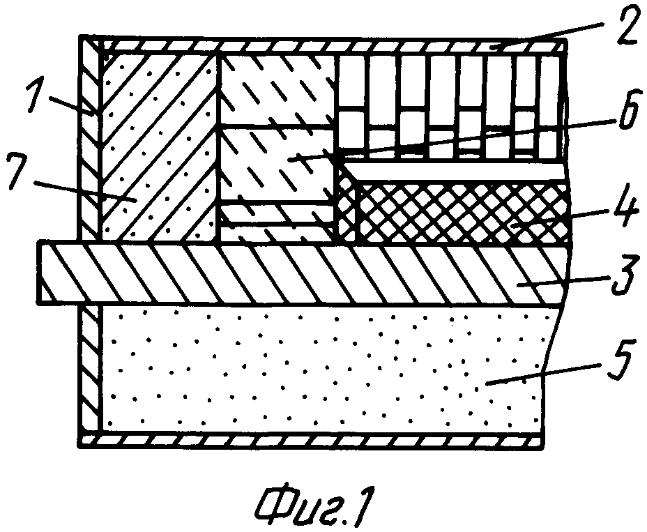 однослойной облицовочной футеровки монолитной. Электролизер содержит кожух 1, фланцевый лист 2, токоподводящий штырь 3, подовый углеродистый блок 4, цоколь 5, бортовую облицовочную 6 и
