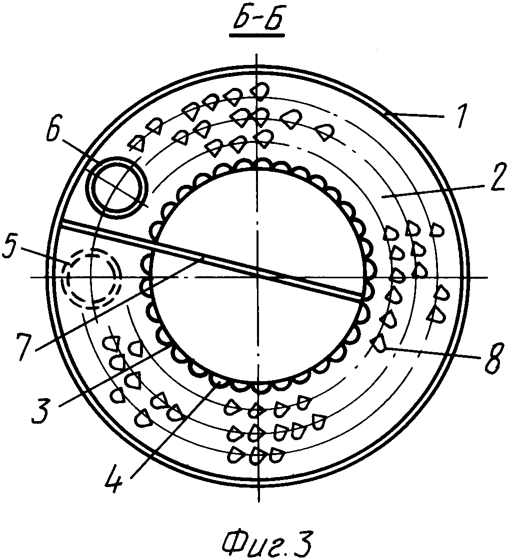капель жидкости совершает кольцевое движение от сливной трубы 5 до переливной трубы 6, расположенных рядом и отгороженных одна от другой диаметральной перегородкой 7 так, что