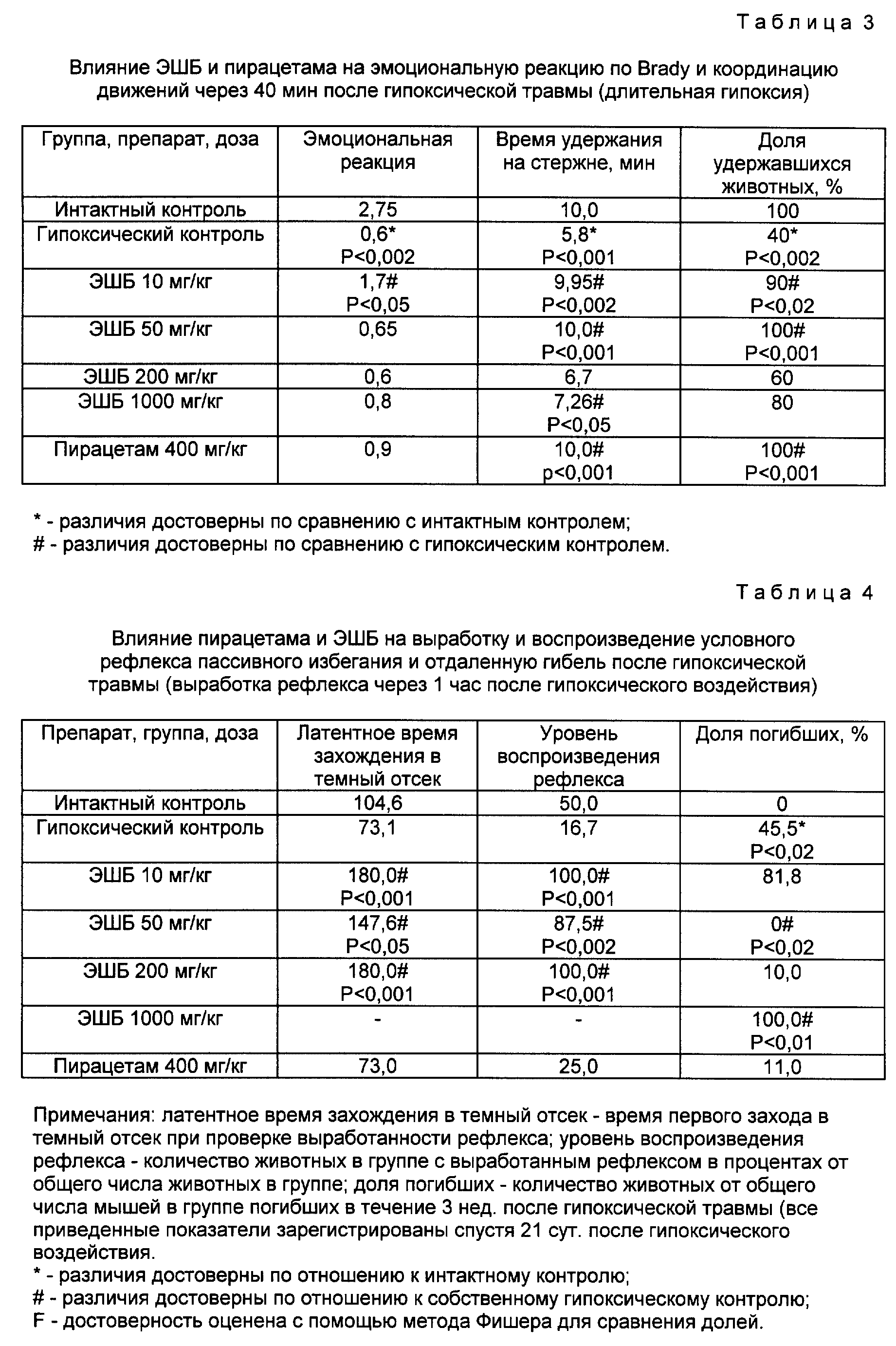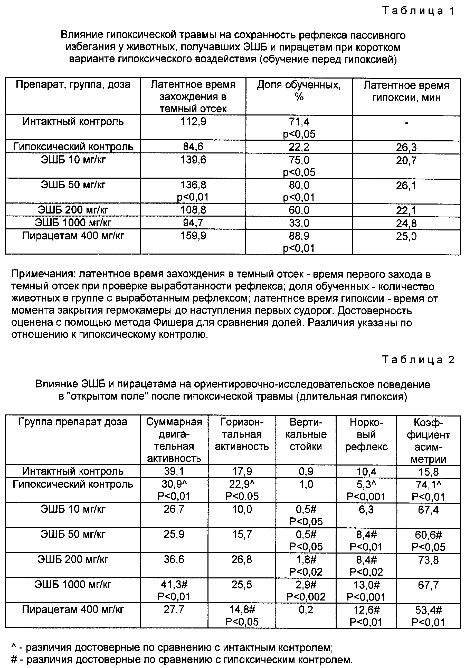 наравне с пирацетамом улучшил практически все указанные показатели. Однако в отдаленные сроки после гипоксического воздействия эффект пирацетама был существенно ниже, чем у ЭШБ в отношении