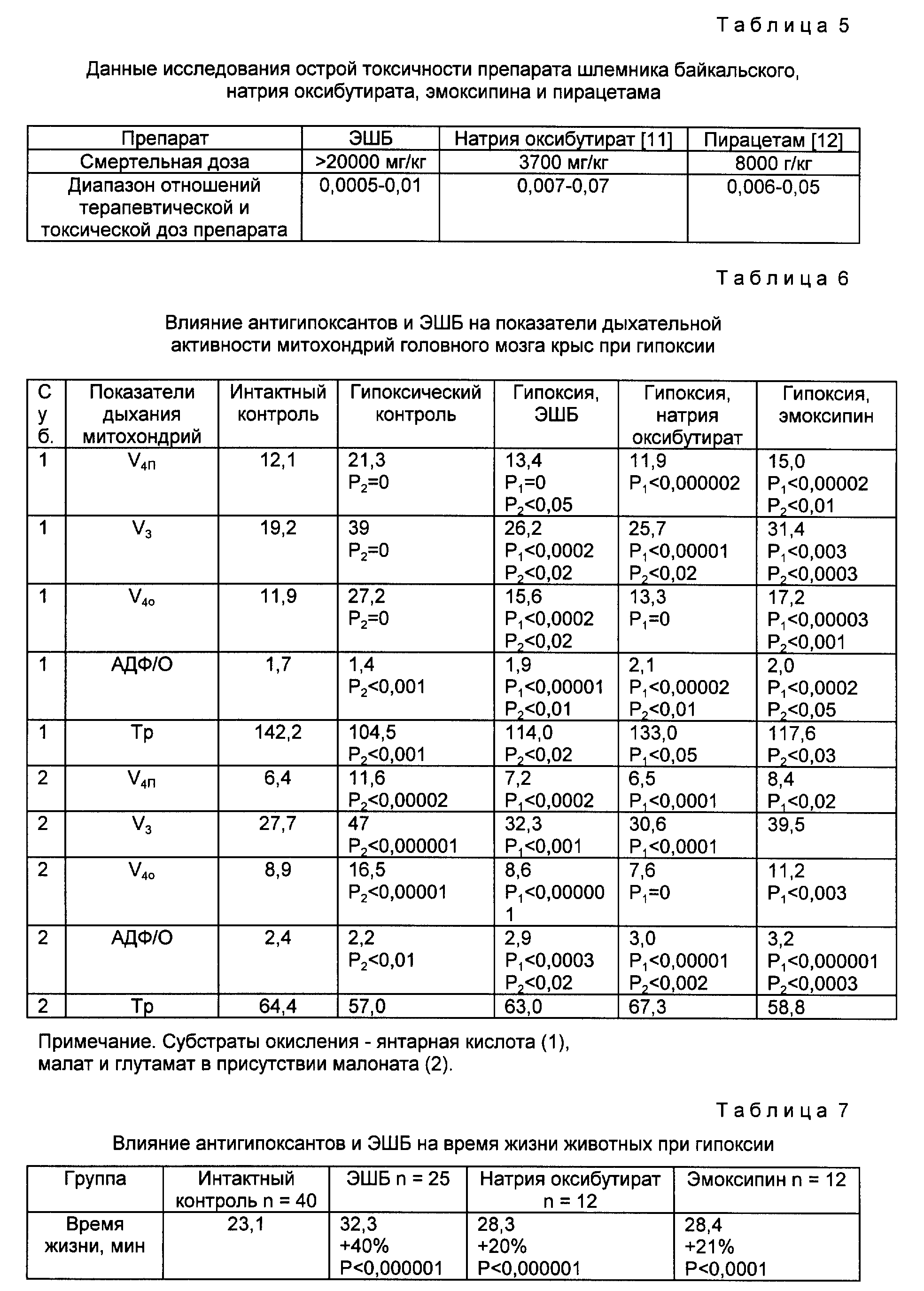 изобретением, является снижение побочных эффектов и повышение эффективности лечения гипоксии за счет применения предлагаемого средства, обладающего малой токсичностью и высокой эффективностью. Решение поставленной задачи достигается тем, что в качестве антигипоксического средства используют экстракт шлемника байкальского (ЭШБ). Таким образом, предлагаемый объект