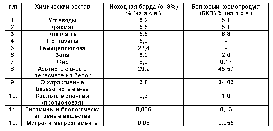 Например, при переработке зерновой барды в культуральную жидкость состав изменяется следующим образом (см. таблицу).