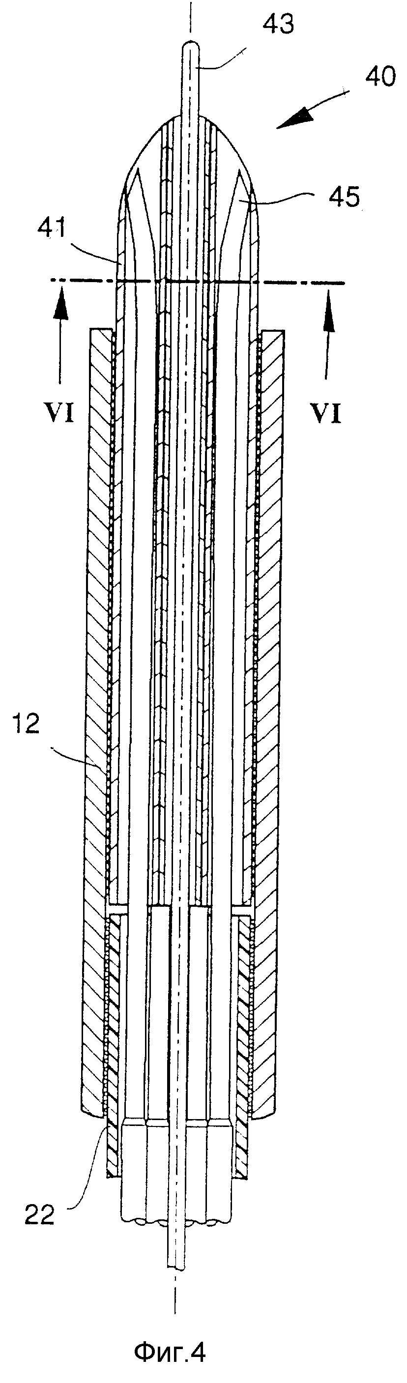 6 - разрез через состоящий из пучка трубок наконечник катетера согласно фиг. 4,