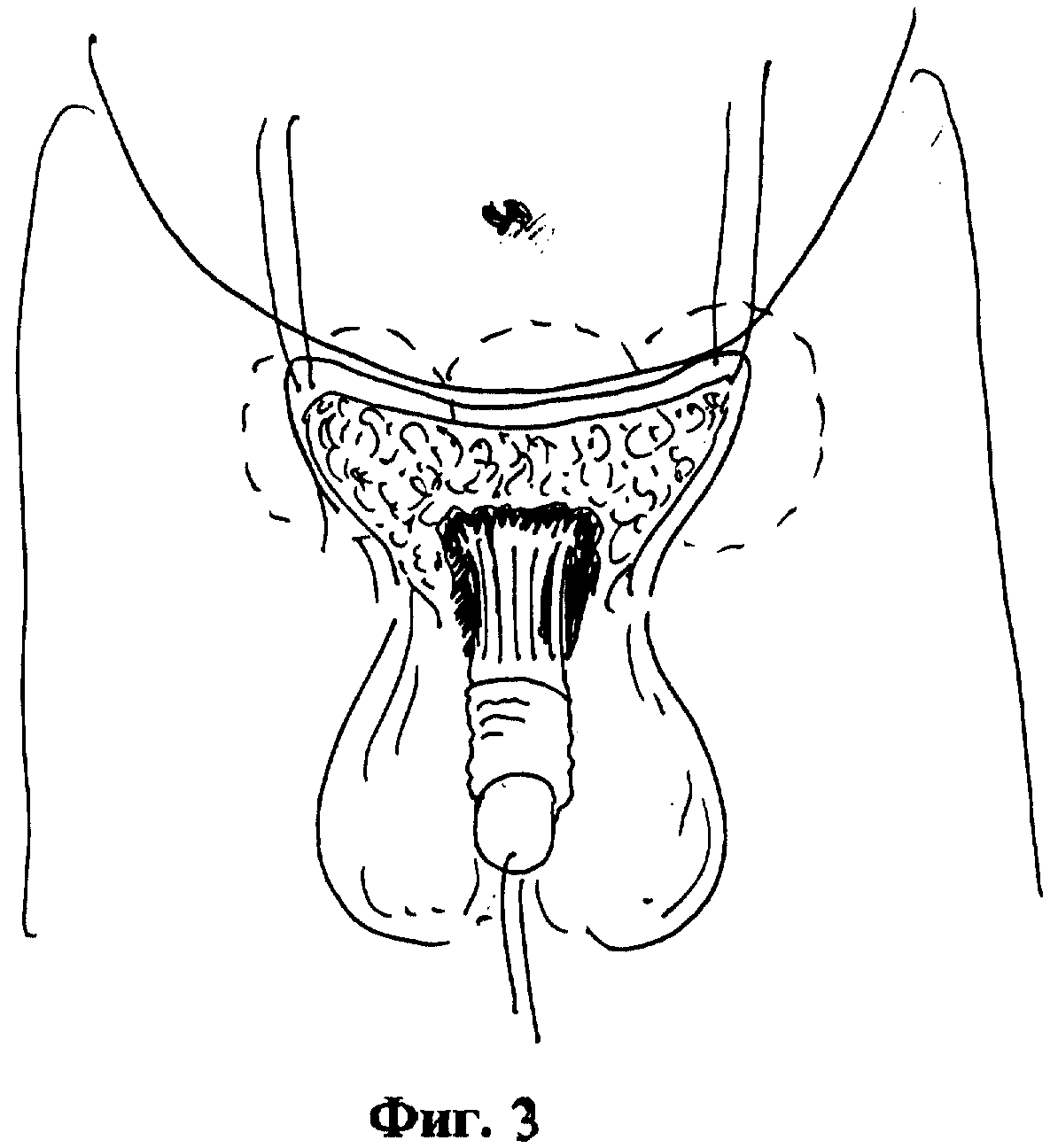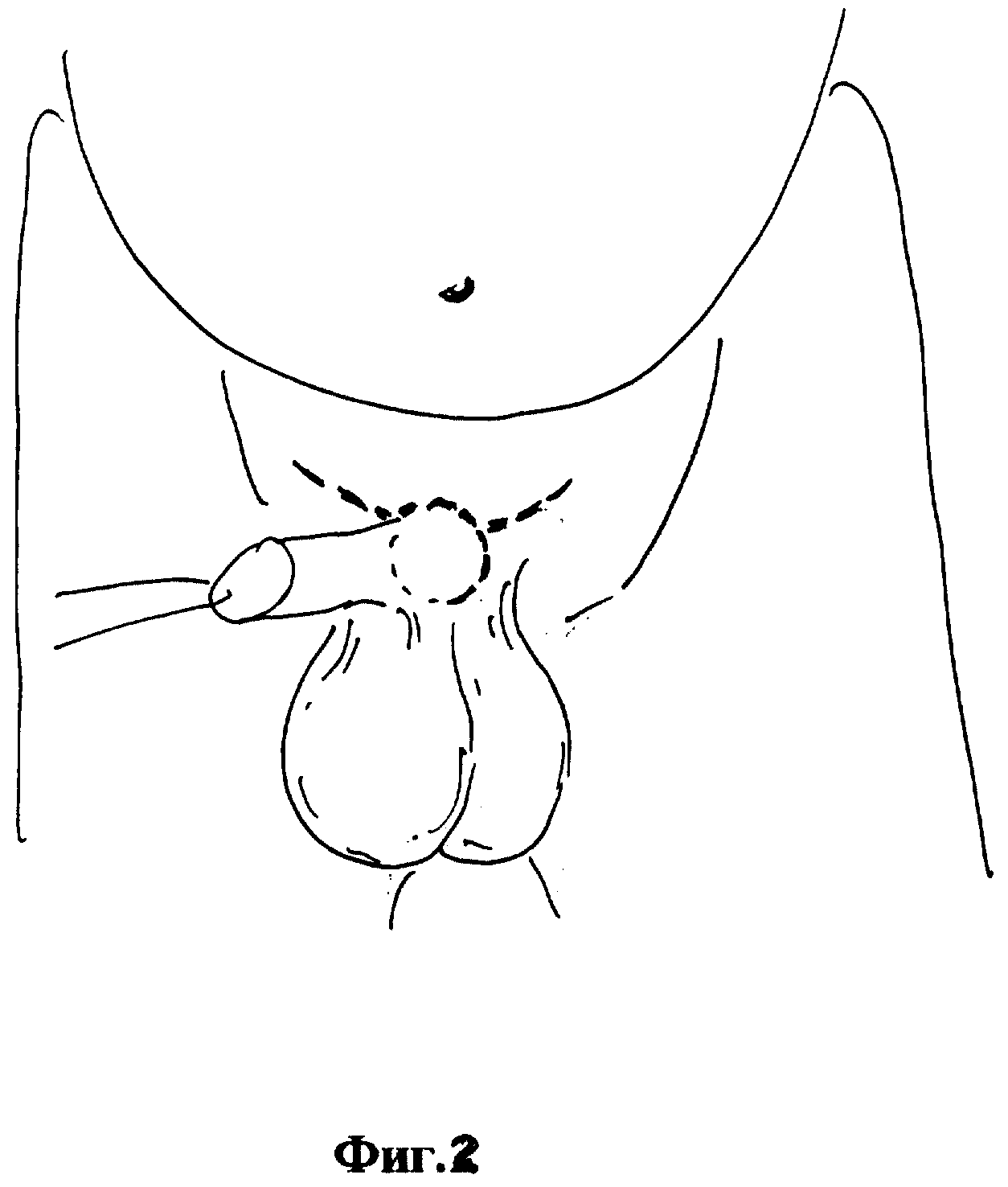Однако недостатком данного способа является сложность иссечения жировой клетчатки в области лона из небольшого разреза на стволе члена. Ограниченный визуальный контроль опасен повреждением элементов семенного канатика. Кроме того, операция не предусматривает фиксацию кожи лонной области к симфизу, что не исключает рецидив заболевания при накоплении жировой клетчатки в лонной области.