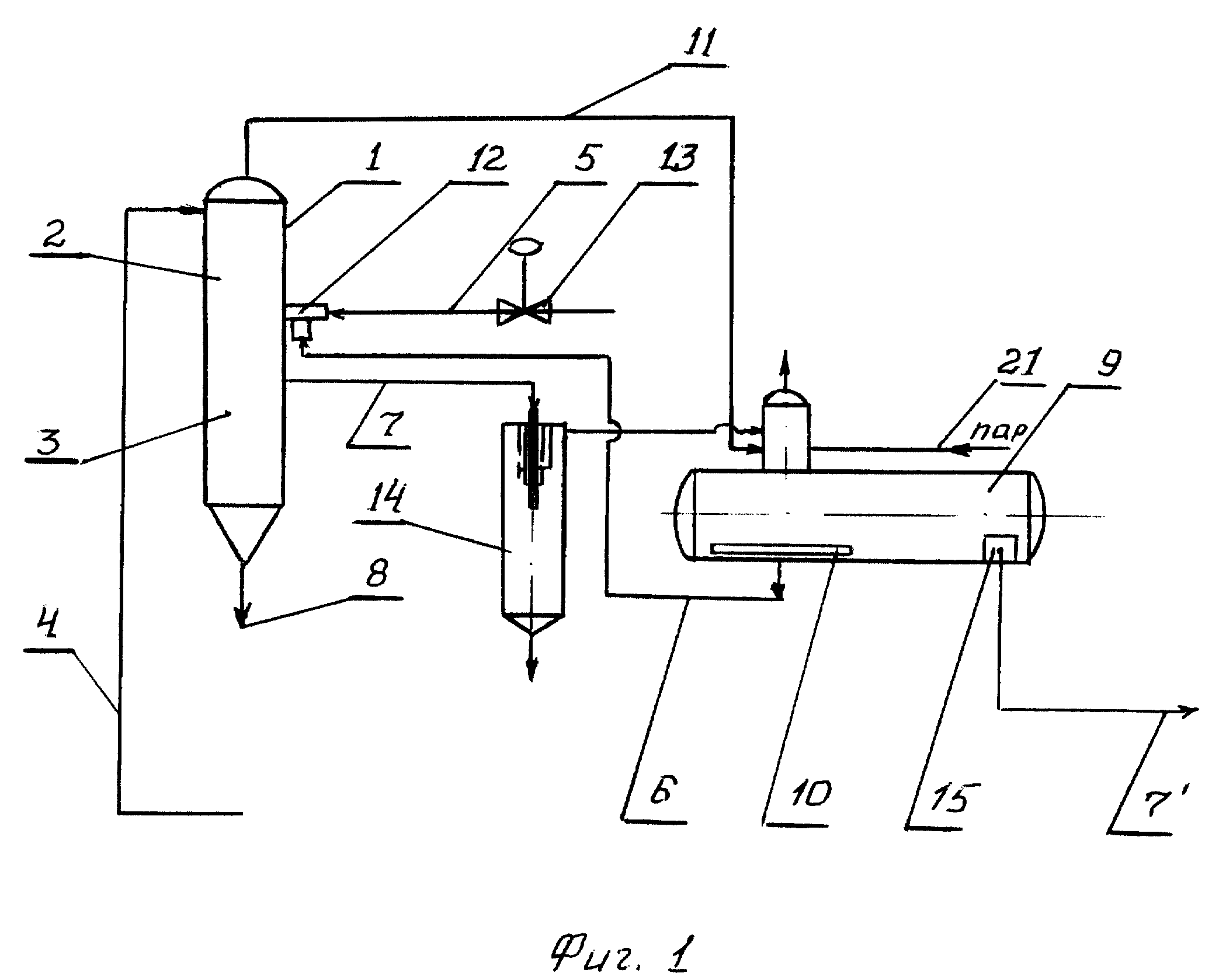 поступающая из осадительной зоны 3 термореактора 1 по дополнительному шламопроводу 19. При этом отвод взвешенного