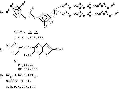 Young et al., описываются соединения формулы I в качестве антагонистов лейкотриенов и ингибиторов биосинтеза лейкотриенов. Настоящие соединения