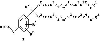 кислоты общей формулы (I), где значения НЕТА, Y, R1; R3-R7, X2, X3, Z1, Z2, R22, p, m, Q1, Q2 указаны в п.1 формулы изобретения, которые являются антагонистами действия лейкотриенов. Соединения полезны в качестве противоастмастических, противоаллергических, противовоспалительных и
