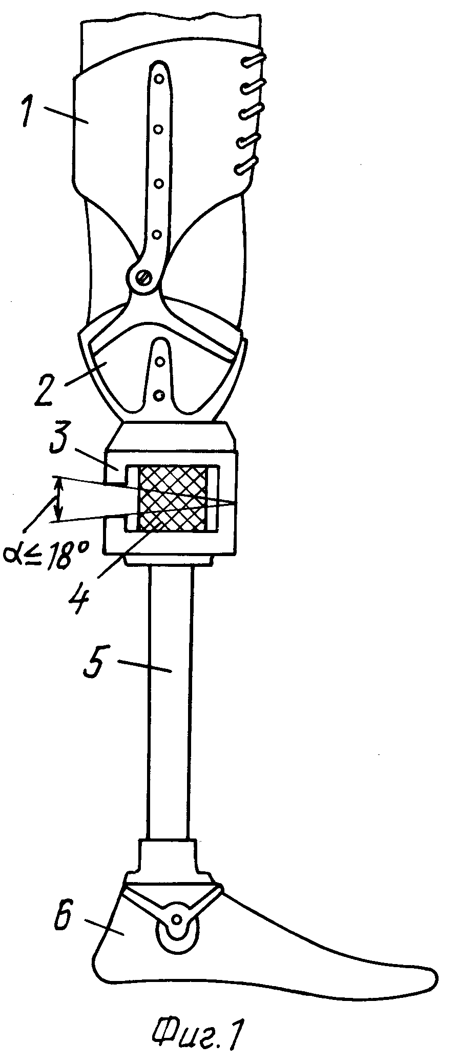 На фиг. 1 изображена схема протеза на короткую культю голени.
