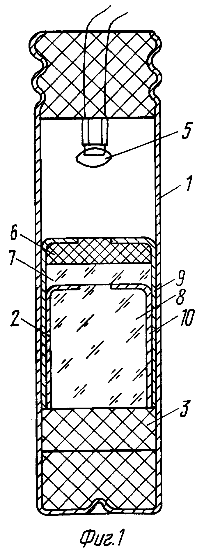 первичного ВВ (патент СССР N 1521291, кл. F 42 B 3/10, 1989). Капсюль-детонатор содержит корпус с закрытым дном, в котором последовательно размещены воспламенительный элемент,