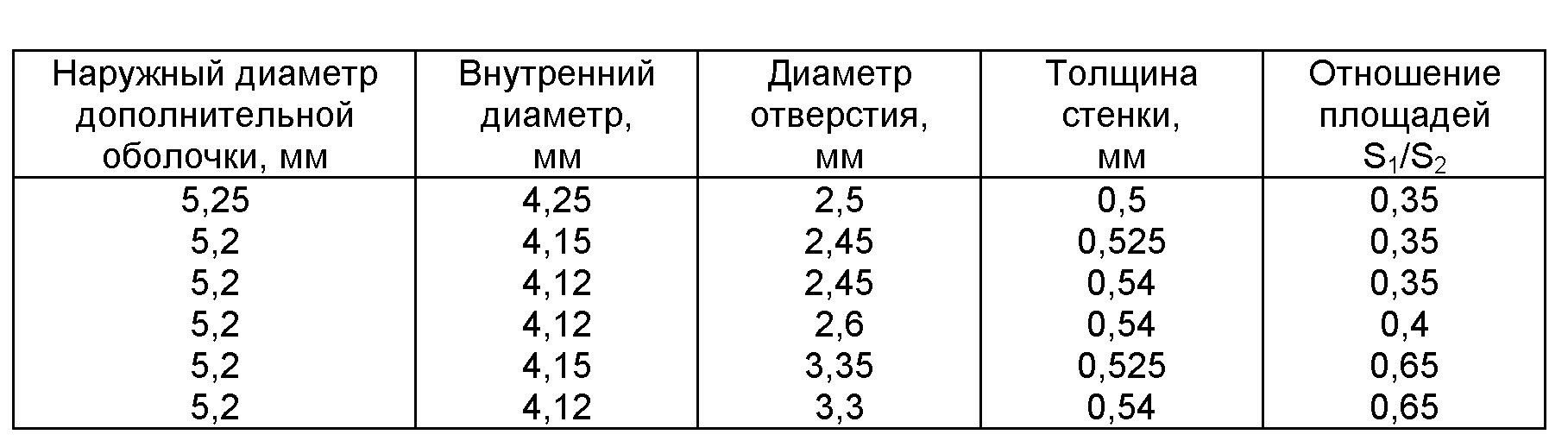 отличающийся тем, что отношение площади поперечного сечения отверстия в дополнительной оболочке к площади поперечного