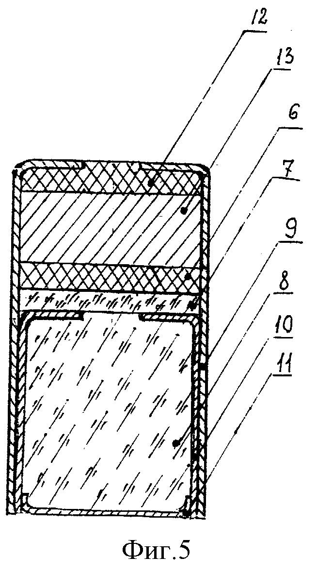 в состав капсюля-детонатора, показанного на фиг. 6. КД состоит из гильзы 1, унифицированного элемента 2, основного заряда 3,