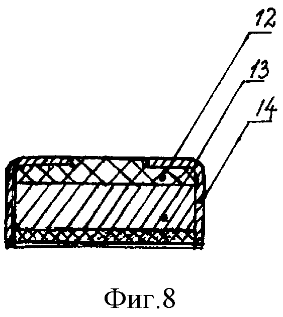 состава 12, замедлительного состава 13, запрессованных в колпачок 14 (фиг. 8). Для предотвращения возможного движения замедлительного элемента 15 в гильзе 1 капсюля-детонатора при