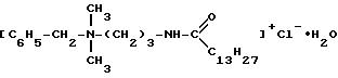 основе бензилдиметил[3-(миристоиламино)пропил]аммония хлорид моногидрата (ЛП) следующей химической формулы ЛП получают известной реакцией конденсации миристамидопропилдиметиламина с хлористым
