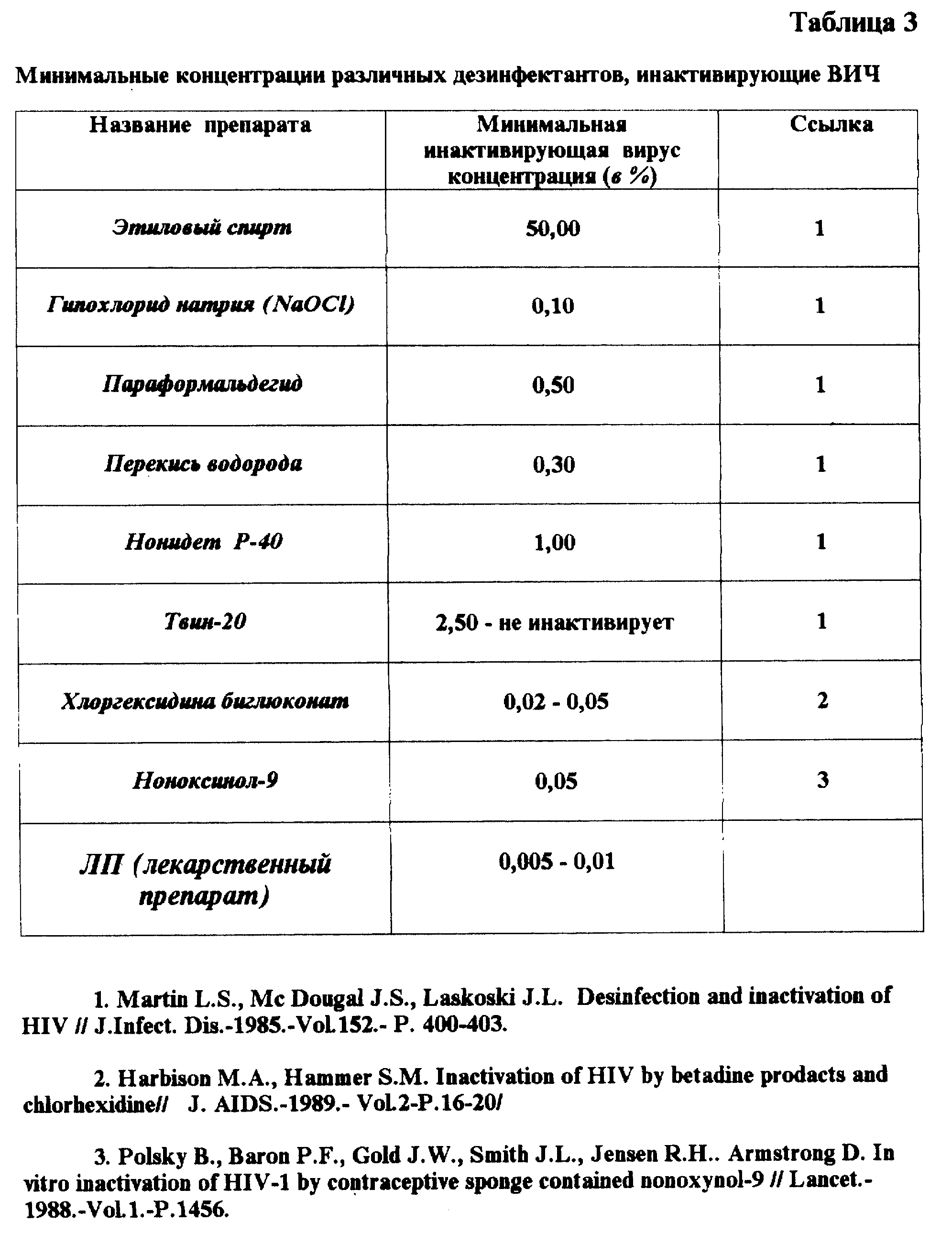 для профилактики ВИЧ-инфекции у людей (Wainberg М.А. et al. Inactivaition of Human Immunodeficiency Virus Type 1 in Tissue Culture Fluid and in Genital Secretions by