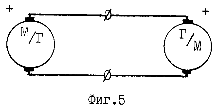 Обратимые электрические машины 1, 12 представляют из себя коллекторные двигатели постоянного тока с возможностью работы как в режиме электрического двигателя, так и в режиме электрического генератора. Причем якорные обмотки 14 обоих электрических машин 1, 12 соединены встречно. Обмотка 13 возбуждение индукторов питается от автономного источника постоянного тока (на схеме не показано). Индукторы электрических машин 1, 12 могут иметь вместо обмоток постоянные магниты. В данной конструкции можно применять и другие типы электрических двигателей (например, бесколлекторные эл. двигатели и т.п.).