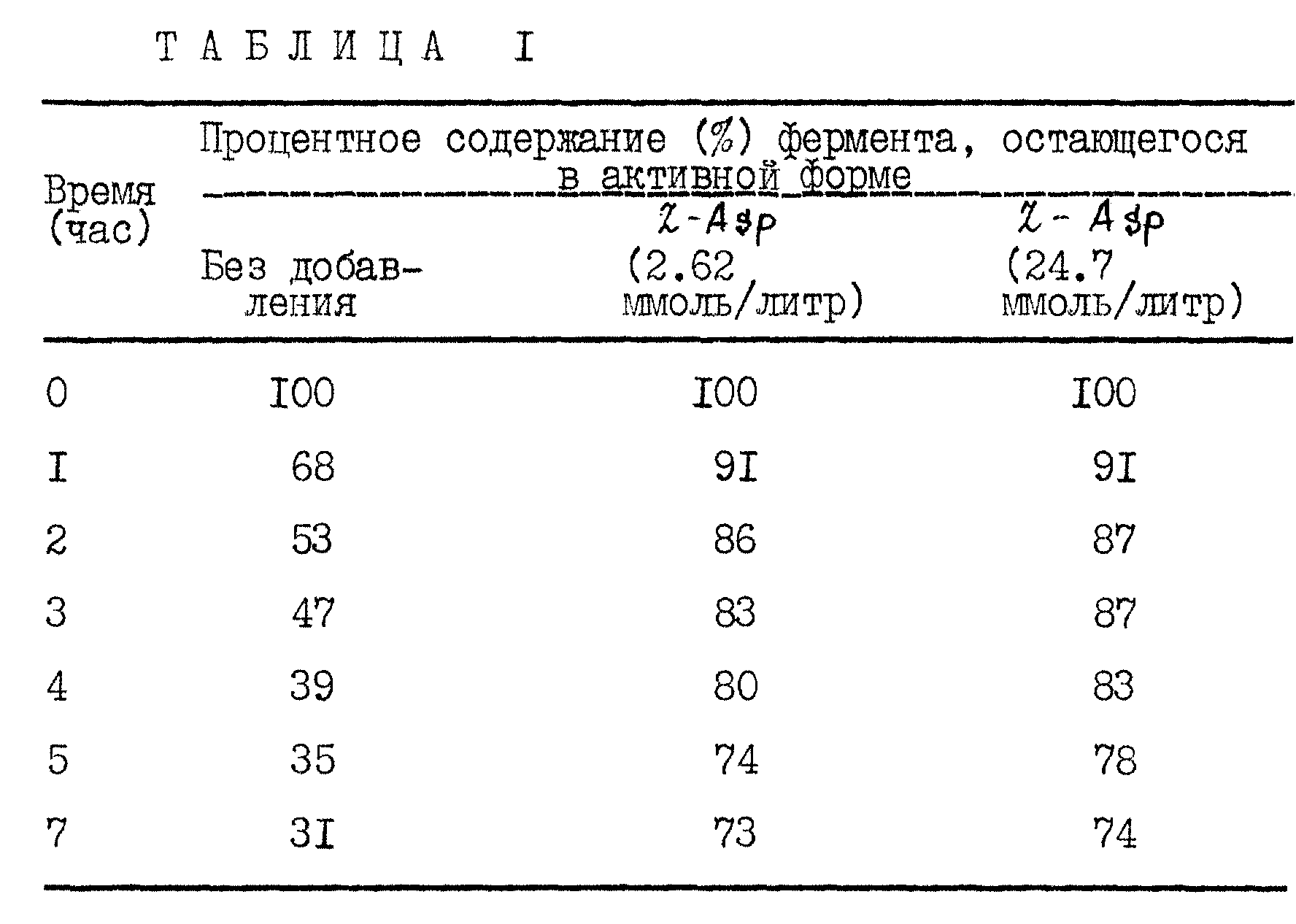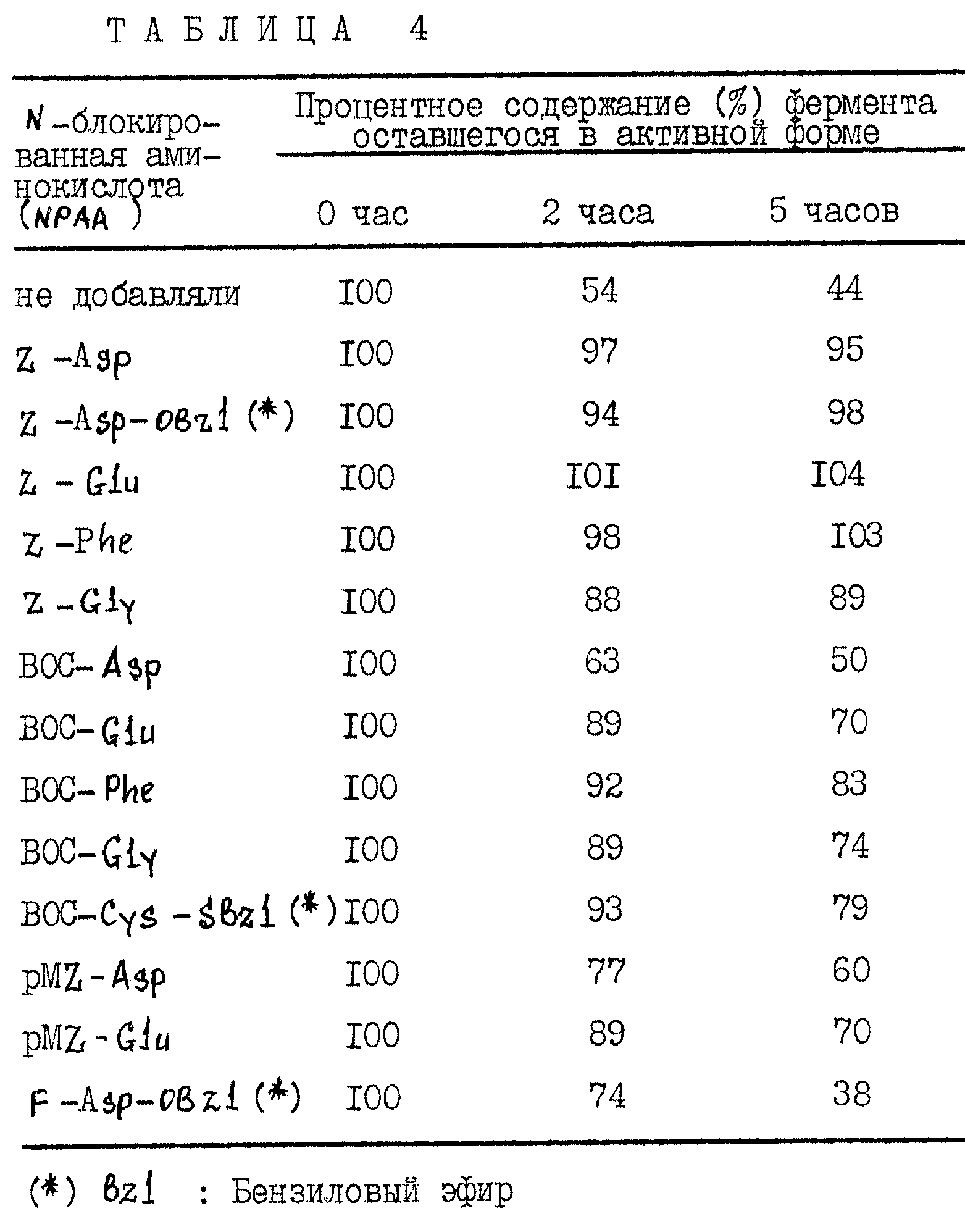 табл. 2, фермент заметно стабилизируется при добавлении NPAA, особенно, NZAA (Z-Asp, Z-Asp-OBzl, Z-Glu,