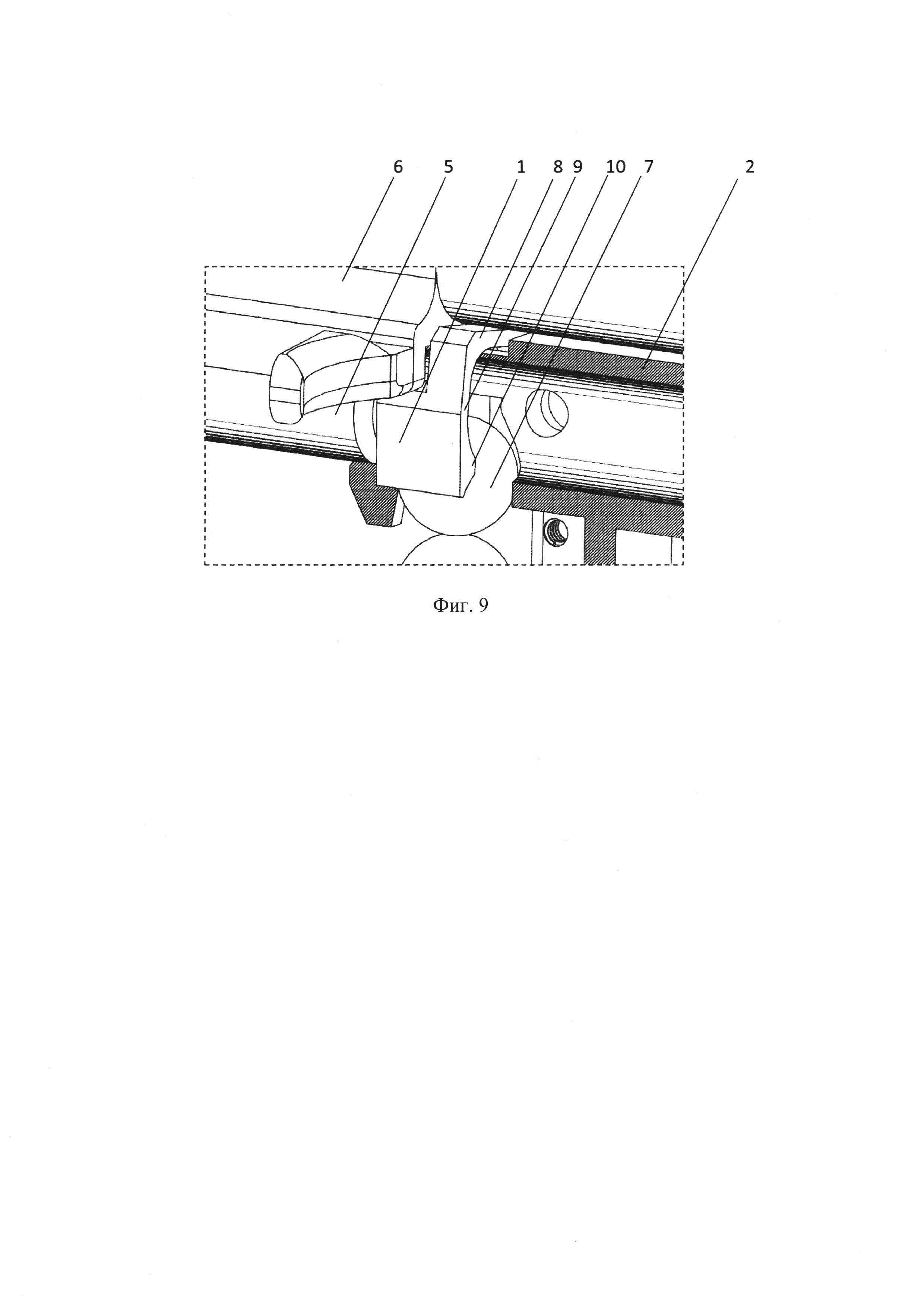 Полезная модель относится к конструкциям маркеров для игры "пейнтбол", а именно к системам предупреждения разрушения снарядов в процессе их силовой подачи в зарядную камору маркера. Система представляет собой установленный на оси в корпусе маркера блокиратор. Блокиратор представляет собой единую деталь и может быть выполнен из металла (или другого материала), обладающего низкой массой и достаточной прочностью, а также не подверженного коррозии во влажной среде. На его теле выполнены выступающие элементы, которые, взаимодействуя с корпусом маркера, затвором, подаваемым снарядом, обеспечивают решение задач по позиционированию данного снаряда в зарядной каморе на линии досылки в канал ствола и остановке затвора в случае нарушения его подачи. Кроме того, второй функцией устройства является предотвращение выпадения уже помещенного снаряда в камору маркера при отсоединении магазина или аналогичного устройства, подающего снаряды в маркер. 1. Область техники Устройство блокировки затвора маркера при нарушении силовой подачи снаряда в зарядную камору, с одновременным предотвращением выпадения снаряда из каморы (далее также: УБЗМ, устройство) применяется в маркерах (имитаторах стрелкового оружия), используемых в игре "пейнтбол". Оно предназначено для предотвращения возникновения в процессе силовой подачи снаряда в зарядную камору маркера механических нагрузок на корпус данного снаряда, способных привести к его разрушению. Применение системы обеспечивает значительное снижение задержек при стрельбе, тем самым повышается качество проведения игр или тренировок. Данное устройство также может быть реализовано и в других видах пневматического оружия или механизмах, а при определенных условиях и в огнестрельном оружии. 2. Уровень техники В настоящее время в игре пейнтбол в качестве метаемого снаряда применяются, главным образом, шары и пули с оперением ("First strike"), конструктивно выполненные по принципу "воланчика". Оба вида снарядов состоят из тонкой легко разрушаемой оболочки и наполнителя - жидкой краски либо порошка. Прочность оболочки рассчитана таким образом, чтобы выдерживать давление газа и других действующих на него сил в процессе движения по каналу ствола и разрушаться в момент удара о преграду с максимальной долей вероятности. Такое свойство оболочки снаряда предъявляет высокие требования к работе механизма маркера и, в частности к синхронизации системы подачи шаров в зарядную камору. Зарядная камора - пространство между передней торцевой частью взведенного затвора и казенной частью ствола, в котором располагается поданный на линию досылки в канал ствола снаряд. При отсутствии данной синхронизации весьма вероятна ситуация, когда движущийся вперед затвор утыкается в недоподанный в зарядную камору снаряд и разрушает его, вызывая задержку в стрельбе, устранение которой требует значительного времени. В маркерах т.н. Hi-end класса, работа которых управляется программируемой электроникой, задача синхронизации решена путем введения, как правило, оптических датчиков, которые, в случае отсутствия шара в зарядной каморе, не дают разрешающего сигнала на спуск затвора. В более простых, но, при этом, более распространенных механических маркерах данная задача практически не решается. Весь расчет строится на снижении вер