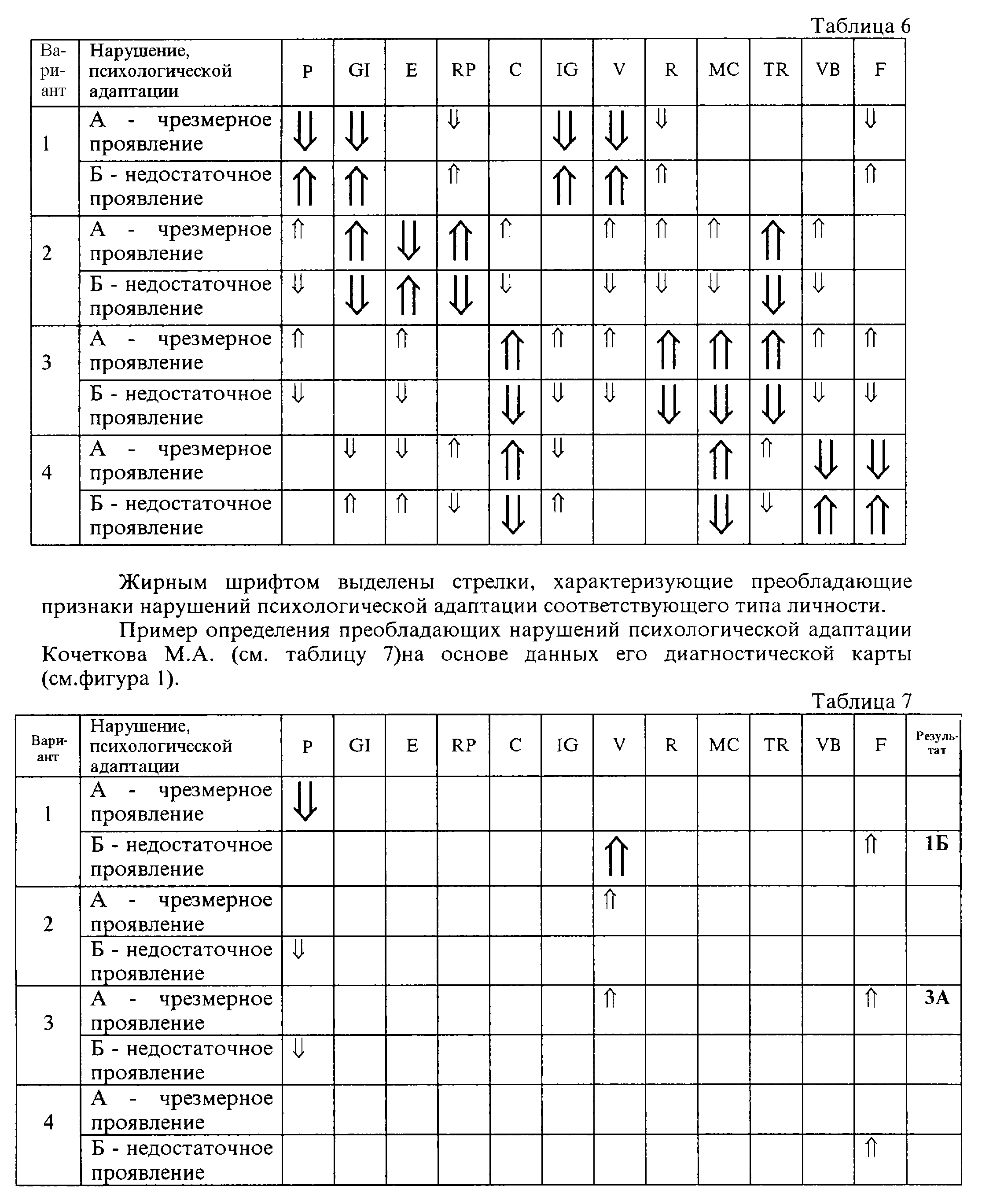 Для определения психологического типа пациента по типологии Юнга (Л.Д. Столяренко. "Основы психологии". - Ростов-на-Дону: "Феникс", 1997, 776.), как было указано выше, определяется на основе статистических данных в табл. 4., и перечня возможных психологических состояний, соответствующих состоянию каждого меридиана по таблицам 2 и 6. Уточнение неявно выраженных характеристик психологического типа (Е - экстраверт или I - интроверт, S - сенсорик или N - интуитив, Т - логик или F - этик, J - рационал или Р - иррационал) производится на основе специально разработанного для этого способа диагностики экспресс-теста (см. табл.2).