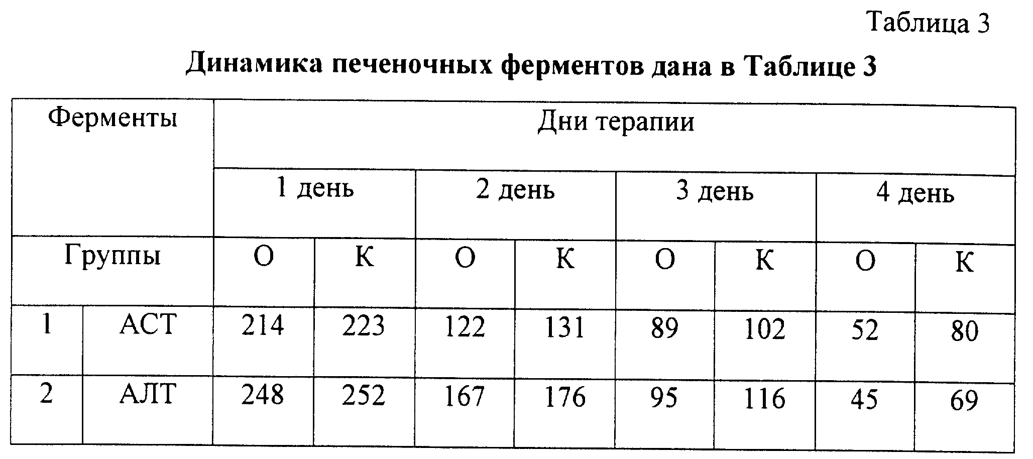(таблица 3). Предлагаемое изобретение снижает симптомы интоксикации, абстинентного, анорексического, гастроинтестинального синдромов, повышает сопротивляемость организма токсическому