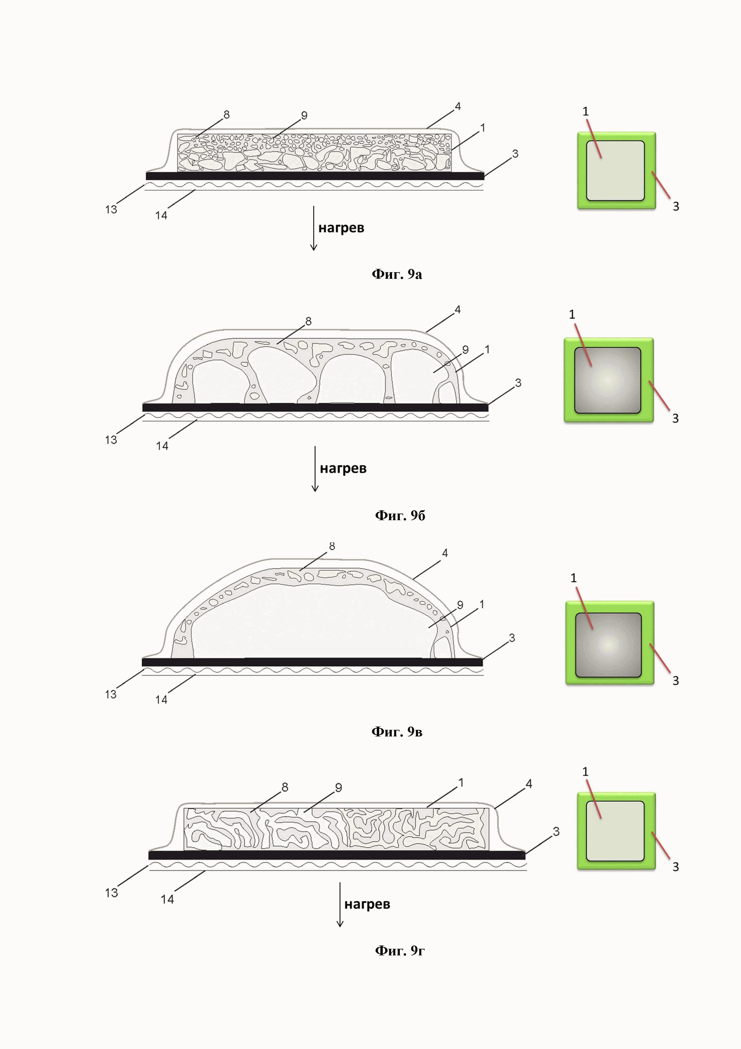 Область техники, к которой относится полезная модель Полезная модель относится к устройствам для регистрации факта превышения температуры выше по меньшей мере одного порогового значения, а именно к устройствам, представляющим собой термоиндикаторную наклейку с необратимым визуальным эффектом срабатывания и обладающим высокой скоростью и точностью срабатывания. Уровень техники Повышение температуры - один из первых и самых частых признаков развития дефектов различного оборудования, таких как, рост переходного контактного сопротивления в электроэнергетике, нарушения в работе подшипников в механике, межвитковые замыкания в обмотке электродвигателей, выход из строя зарядных устройств или аккумуляторов в бытовых приборах. Своевременное выявление таких перегревов позволяет заблаговременно устранить неисправность и не допустить выхода из строя оборудования, возникновения аварийных ситуаций и связанных с ними пожаров или отключений. В технических и нормативных документах установлены предельно допустимые температуры, нагрев выше которых следует рассматривать как дефект, требующий незамедлительного прекращения эксплуатации и вывода оборудования в ремонт (например, РД 34.45-51.300-97, РД 153-34.0-20.363-99, ГОСТ 8865-93, 8024-90, 10693-81, 2213-79, 10434-82, 16708-84, 2585-81, 32397-2020, 26346-84, 839-2019, ГОСТ Р 51321.1-2007 и др.). Для выявления дефектов, связанных с превышением предельно допустимых температур, используются различные методы диагностики. Самым широко используемым методом тепловой диагностики является тепловизионный контроль. Однако тепловизионная диагностика имеет фундаментальное ограничение, связанное с тем, что с ее помощью можно увидеть тепловую картину только в момент осмотра. Поскольку нагрев оборудования, в большинстве случаев, напрямую связан с его нагрузкой, наиболее информативной и достоверной является диагностика в момент пиковой нагрузки (при номинальных или пусковых токах, максимальных оборотах и т.п.). В соответствии с руководящими документами для проведения тепловизионной диагностики рекомендовано создание специальных режимов нагрузки оборудования, механизмов и агрегатов. Кроме того, большинство современного оборудования не допускает проведение осмотра под нагрузкой в силу конструкционных особенностей или требований безопасности. Таким образом, выявляемость дефектов с помощью тепловизоров является невысокой. Для автоматического непрерывного контроля температуры используют электронные приборы, например, термоэлектрические преобразователи (термопары), пирометры и другие сенсоры со специальным записывающим устройством, либо различные индикаторы перегрева. Особенностью электронных датчиков является измерение температуры только в точке контакта сенсора и устройства. Это не позволяет выявлять локальные дефекты, возникающие на отдельном участке большой поверхности, например, межвитковые замыкания трансформаторов или возникновение частичных разрядов в оболочке кабелей или кабельных муфт. В этом случае происходит нагрев небольшого участка внешней изоляции кабеля, имеющий площадь несколько квадратных миллиметров. Увидеть такой нагрев, например, термопарой, закрепленной всего в нескольких сантиметрах от дефекта или проложенной внутри кабеля, невозможно. Кроме того, электронные датчики имеют сложную конструкцию, требую