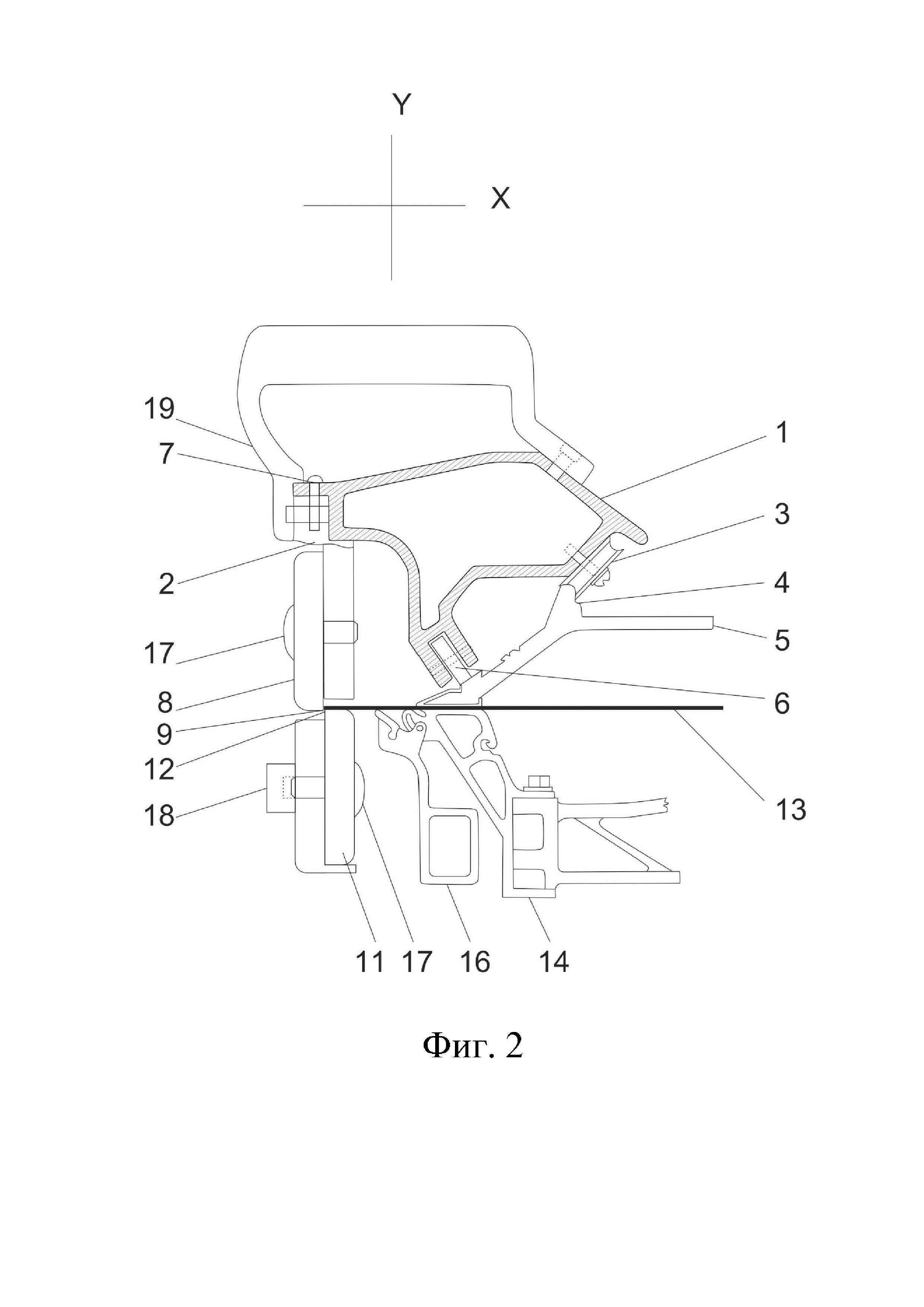 При этом на фиг.2 также показана верхняя прижимная планка 16, шарнирно соединенная с нижней прижимной планкой 14.