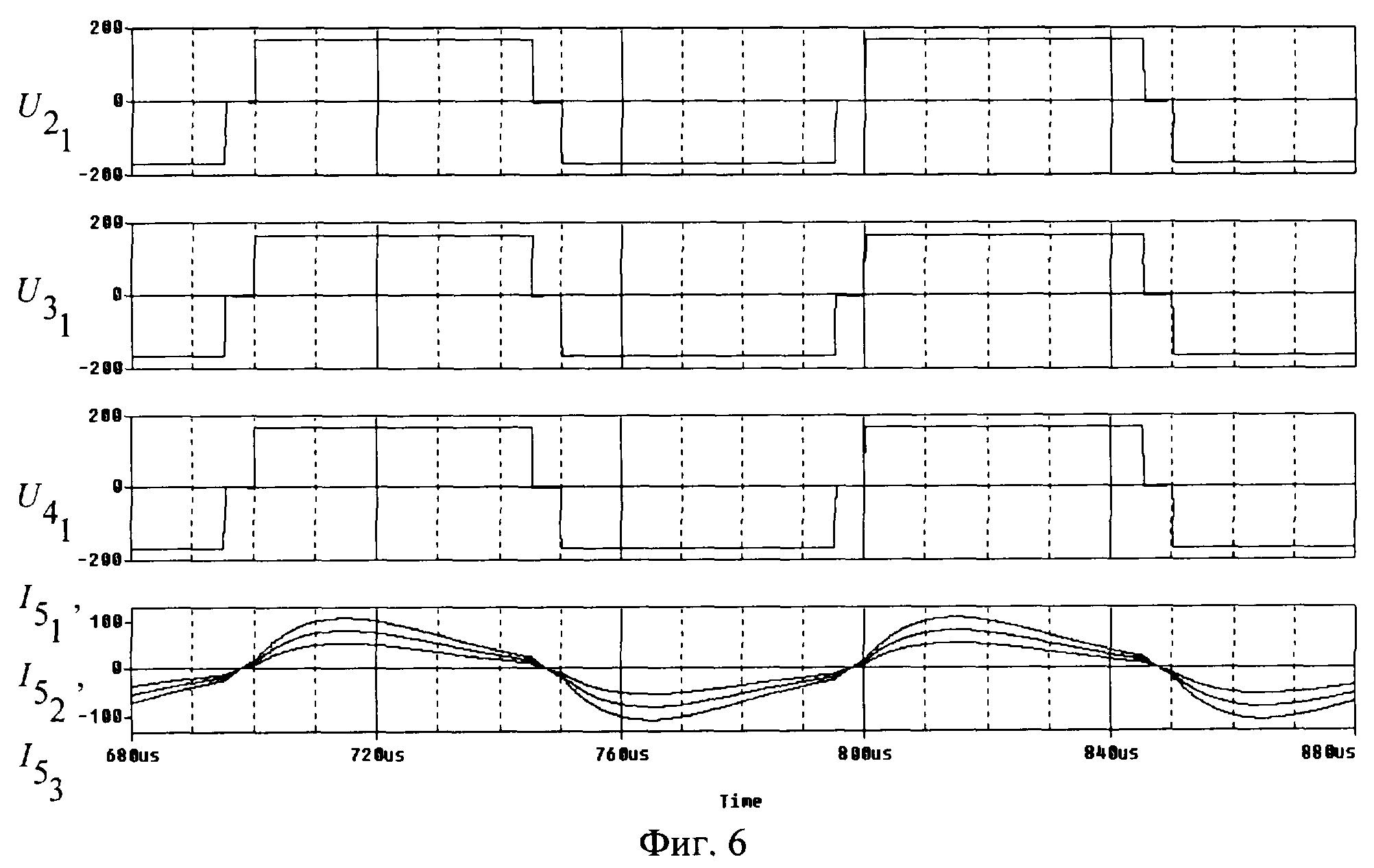 На диаграмме фиг.6 представлены напряжения и токи в режиме стабилизации мощности в