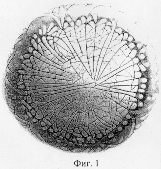 Было проведено микроскопическое исследование сыворотки крови предложенным способом. При этом на поверхности высушенной капли выявлены радиальные трещины практически одинаковой ширины, ровные