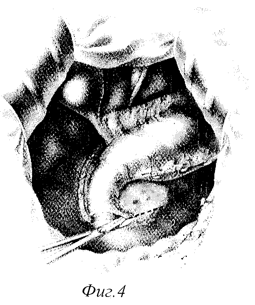 и расположенными по верхнему и нижнему краю баллона дренажными трубками 4, для того чтобы в послеоперационном периоде поддерживался широкий раневой канал,