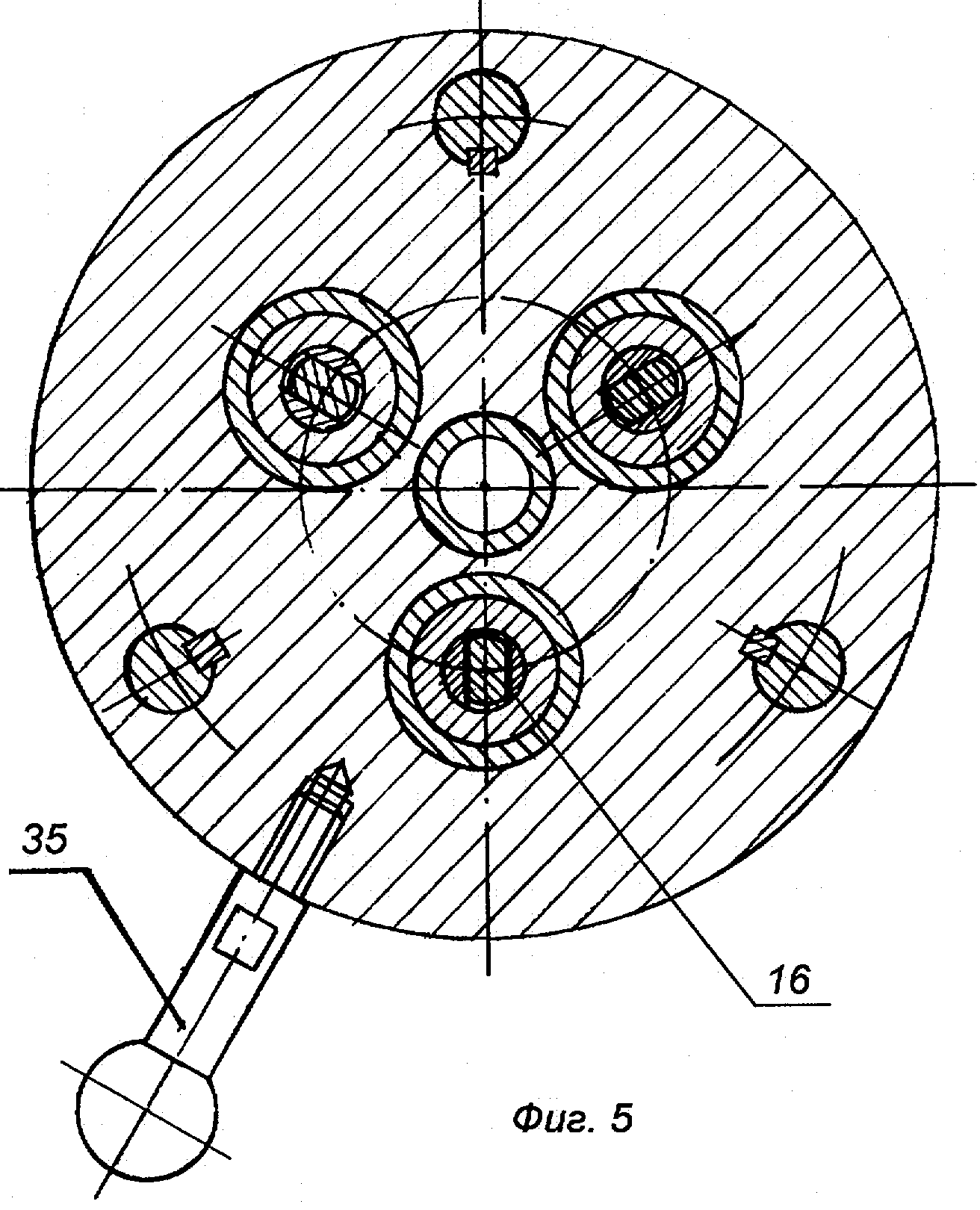 Закрытие резьбонакатной головки в рабочее положение осуществляется рукояткой 35, завернутой в резьбовое гнездо кольца 9.