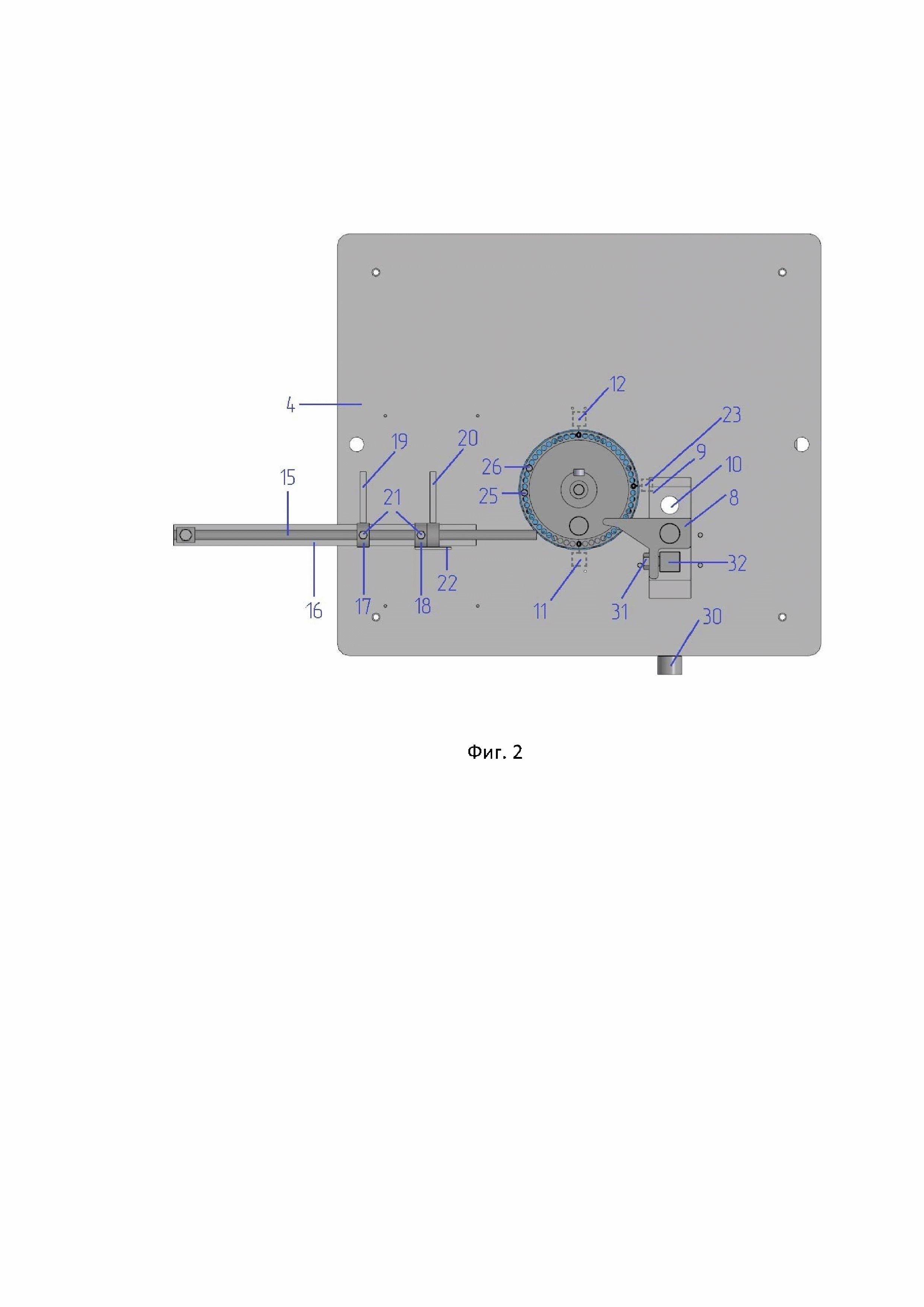 Полезная модель относится к области станкостроения, а именно к конструкции станка для гибки прутков арматуры под давлением и используют для изготовления скоб и хомутов различной формы, предназначенных для армирования бетонных конструкций и других целей народного хозяйства. В области производства приводных станков для гибки прутков арматуры, заявитель проработал несколько аналогичных технических решений, которые были раскрыты в разных патентных документах, например, авт. свидетельства, SU: №688258, «Станок для изготовления гнутых изделий», B21D 7/022, оп. 30.09.1979; №944709, «Гибочная машина», B21D 7/02, оп. 23.07.1982 г.; №1260062, «Станок для изготовления гнутых деталей», B21D 11/12, оп. 30.09.1986 г.; патенты на полезные модели: №23805, «Гибочный станок для изготовления арматурных изделий», B21D 11/12, оп. 20.07.2002 г.; №44552, «Устройство для гибка арматуры», B21D 11/12; 7/022, оп. 27.03.2005 г.; №138264, «Устройство для гибки», B21D 7/02, оп. 10.03.2014 г.; патенты на изобретения, RU: №2333066, «Станок для гибки круглого профиля», B21D 7/02, оп. 10.09.2008 г.; патент (IT): №2773074, «Устройство и способ обработки прутков», B21D 11/12, оп. 30.05.2022 г. Однако каждый из вышеупомянутых известных станков имеют некоторые ограничения, заключающиеся либо в отсутствии возможности двухмерного загибания изделий, либо не позволяет без необходимости постоянного переоснащения станка выполнять разные операции и предпочтительно осуществлять выполнение разного радиуса гибки одного и того же прутка, либо известный станок слишком громоздкий и связан с большими затратами по энергопотреблению и обслуживанию. Таким образом, решение проблем по усовершенствованию конструкции станка для гибки прутков арматуры являются в настоящее время актуальными. Ближайшим техническим решением, принятым за прототип, является приводной станок гибочный для прутков арматуры СГА-1, описанный в техническом описании и инструкции по эксплуатации СГА-1ТО, опубликованные в сети Интернет 10.05.2021 г. (см. в сети Интернет по ссылке). Известный приводной станок для гибки прутков арматуры (СГА-1) включает: сварную раму, в верхней части которой установлена плита с редуктором и приспособление для гибки прутков, включающее гибочный диск, гибочный палец, центральный палец с роликом, упора в виде штыря с роликом, каретку упора с отверстиями, электропедаль и электродвигатель, при этом на гибочном диске имеются отверстия с втулками для установки гибочного пальца, а также расположенные по окружности отверстия для установки кулачков останова и реверса, взаимодействующие с соответствующими концевыми выключателями останова и реверса. Привод гибочного диска осуществляется от двигателя через клиноременную передачу, две открытые зубчатые передачи и червячный редуктор. Скорость вращения гибочного диска можно изменить перестановкой шестерен. Недостатком известного станка является недостаточная эффективность работы и сложность в эксплуатации станка, поскольку при необходимости произвести несколько загибов прутка необходимо осуществить перенастройку элементов станка, имеет место разбалансировка гибочного диска, отсутствие в процессе гибки поддержки прутка и надежности его перемещения, наличие шума при работе, вследствии открытой зубчатой передачи, требующей постоянной смазки колес, а присутствие высокого напряжения на кнопках управления, не обеспечивает безопасную работу с