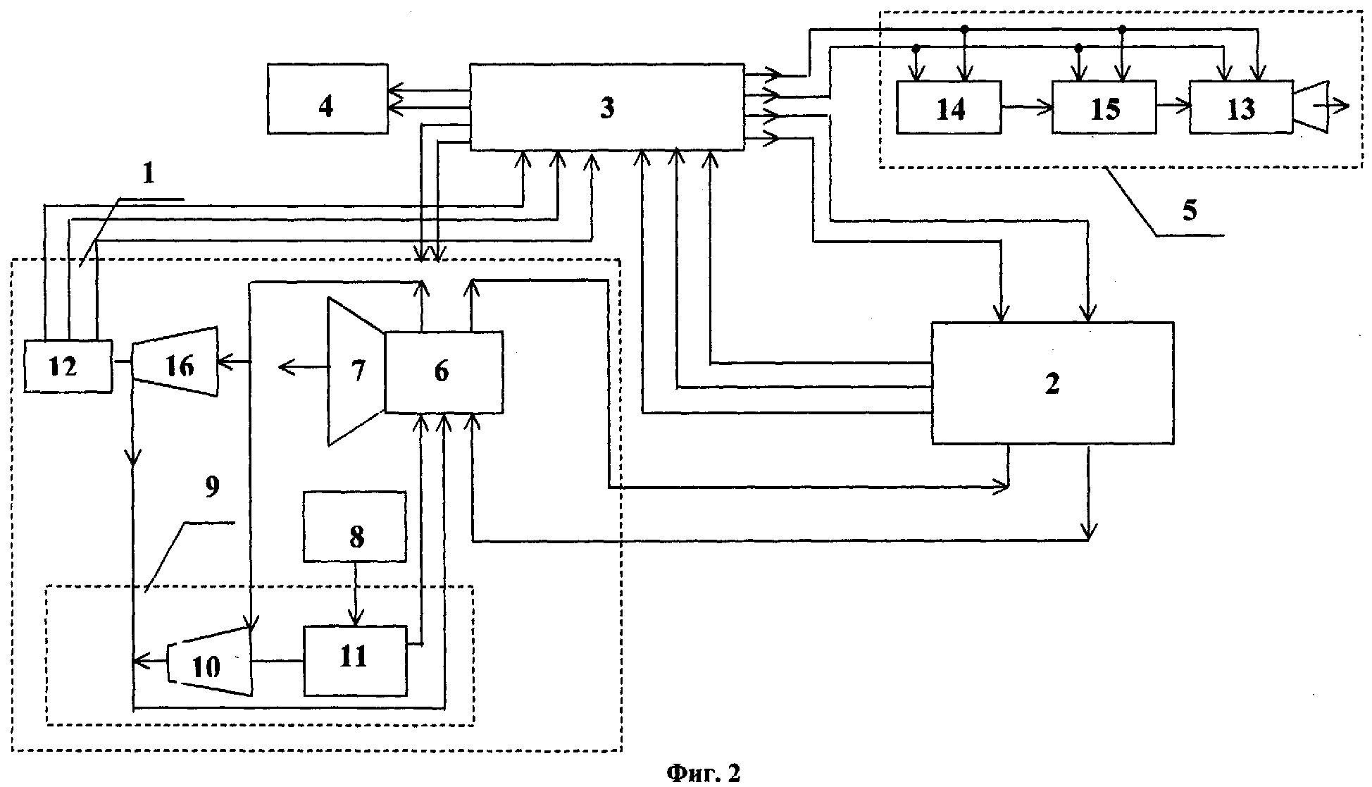 компрессор (или насос) гидравлически обеспечивает движение рабочего тела по замкнутому контуру 2. Полученная в замкнутом контуре 2 электрическая энергия через систему управления 3 направляется на