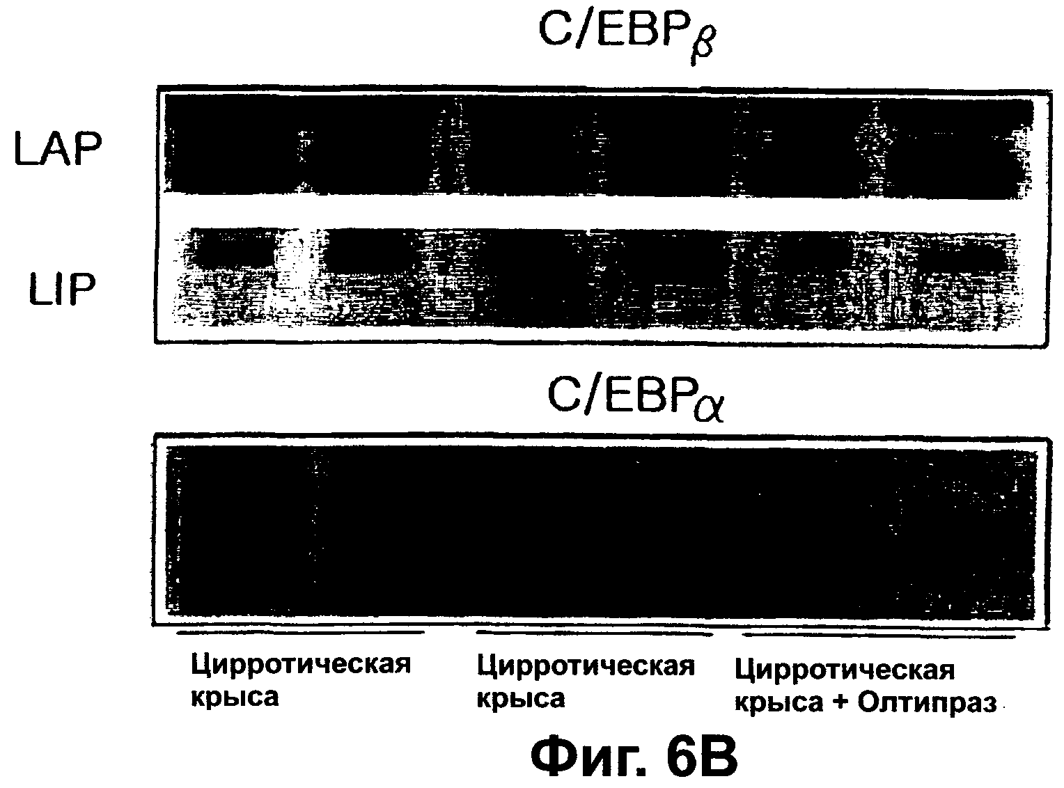 c-Met вследствие введения олтипраза в цирротических крыс. Фиг.6B является фотографией гель-электрофореза, показывающего увеличение LAP, который является активным агентом С/ЕВР-β,