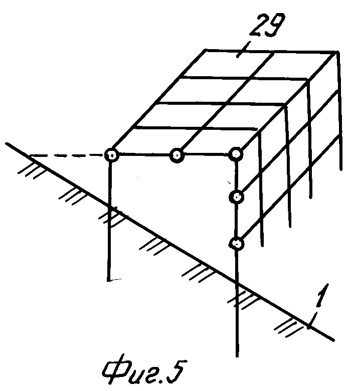 лазерной рулетке (на чертеже не показан) или стержне 23. На фиг.5 показана Г-образная платформа 29, которую устанавливают на откосе 1, вдавливая частично ее вертикальные стержни в грунт