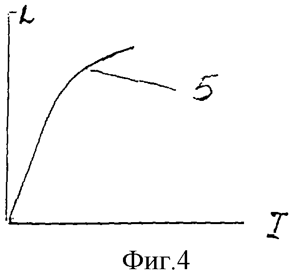 задержки. На фиг.3 изображена линия передачи, проложенная в кабеле. Фиг.4 демонстрирует зависимость между индуктивностью линии задержки и током нагрузки.
