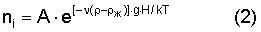 выбирают такой, чтобы ее плотность была несколько меньшей плотности частиц; объем ν, м3, занимаемый всеми частицами, находящимися на высоте Н в жидкости; количество частиц ni, находящихся на высоте Н и имеющих энергию mi·g·H, где mi - масса частиц, находящихся на высоте Н; g - ускорение силы тяжести,