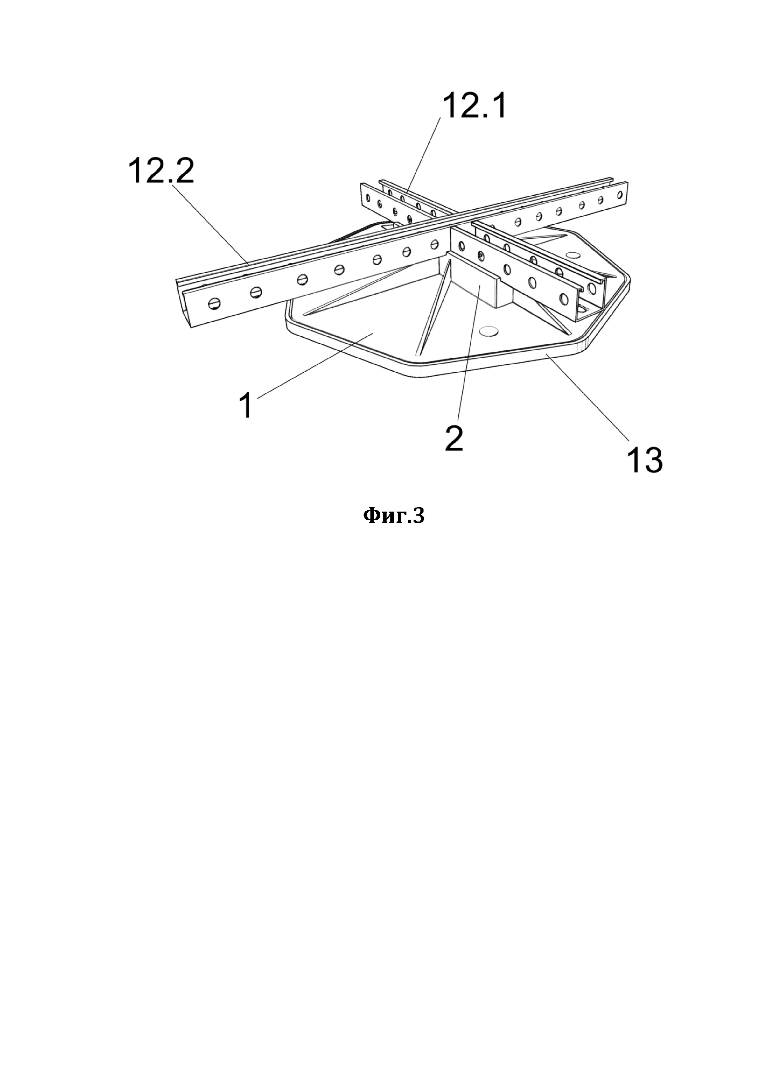 Для лучшей фиксации опоры на опорной поверхности с нижней стороны основания 1 может быть закреплена противоскользящая подстилка 13 (см. Фиг.4), которая может быть выполнена из резины или силикона.