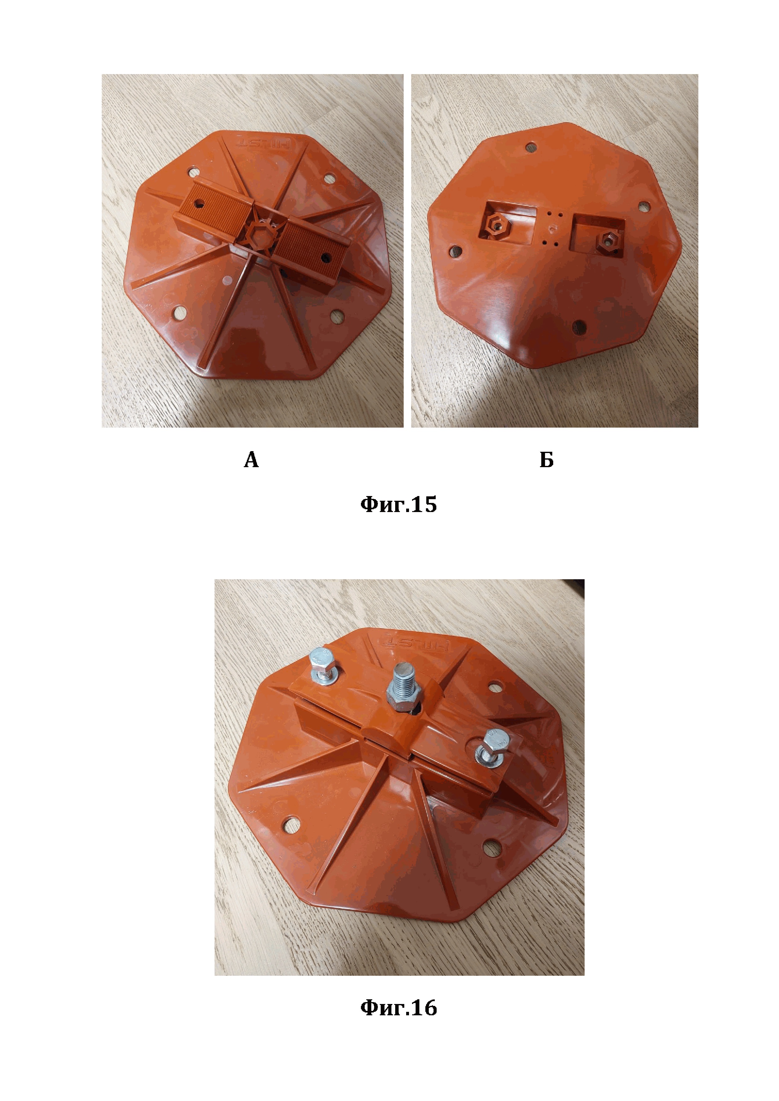 Были изготовленные опытные образцы опор (см. Фиг.15), накладок к ним (см. Фиг.16).