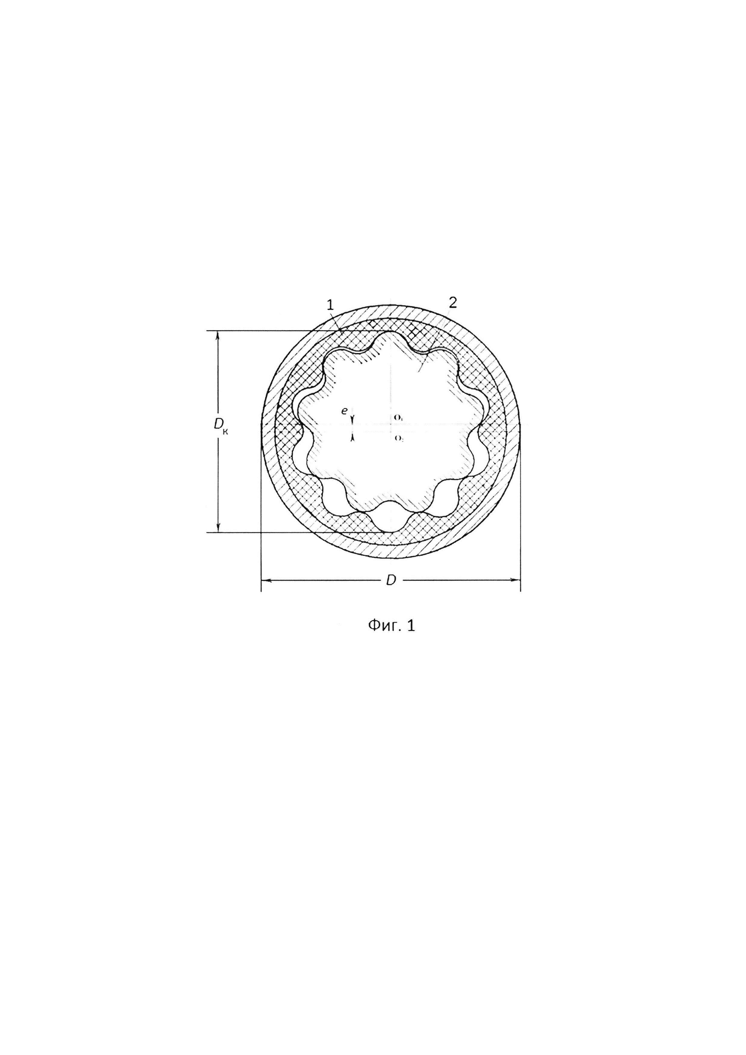 1. Высокооборотный винтовой забойный двигатель для бурения скважин, включающий винтовые рабочие органы, состоящие из находящихся в зубчатом зацеплении неподвижного статора и планетарно движущегося ротора, соединенного с верхним концом выходного вала, с числом заходов, выбранным в зависимости от требуемого рабочего объема двигателя, отличающийся тем, что контурный диаметр Dк* рабочих органов назначают согласно зависимости Dк*=а⋅Dк=b⋅D, где Dк - контурный диаметр рабочих органов серийного забойного двигателя для бурения долотом заданного типоразмера; D - наружный диаметр корпуса серийного забойного двигателя для бурения долотом заданного типоразмера; а, b - масштабные коэффициенты, зависящие от заданной частоты вращения и кинематического отношения винтового забойного двигателя, принимаемые в диапазоне а=(0,7-0,9), b =(0,5-0,6), причем безразмерные геометрические параметры рабочих органов принимают каноническими (традиционными) согласно общим положениям теории циклоидального зацепления и рабочего процесса двигателя. 2. Высокооборотный винтовой забойный двигатель по п. 1, отличающийся тем, что винтовой ротор и другие элементы роторной группы выполнены из сплава легкого металла (алюминия или титана) с упрочнением рабочих поверхностей.
