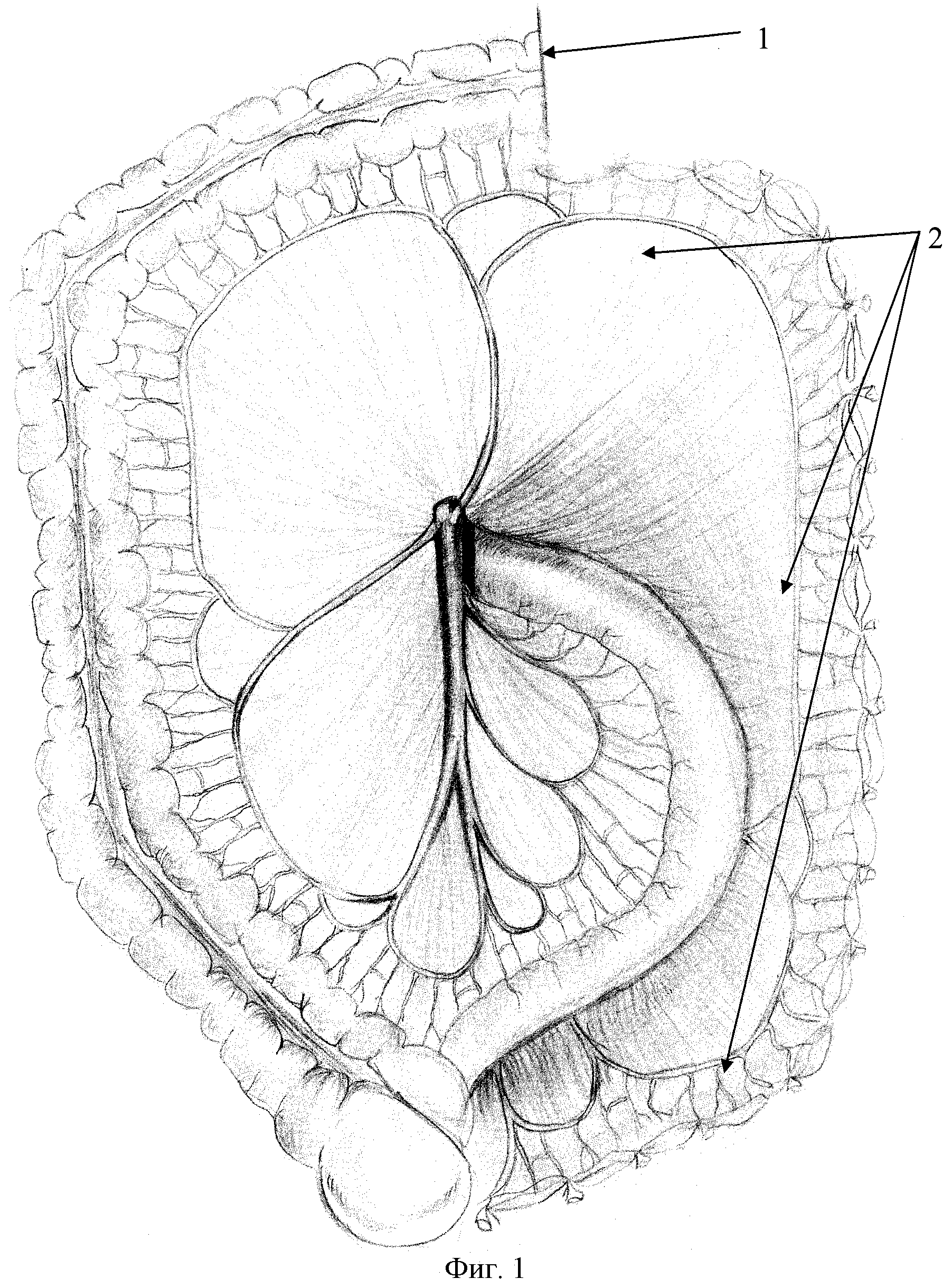 Предлагаемое изобретение относится к медицине, в частности к хирургии, и может быть использовано при хирургической коррекции доброкачественных заболеваний толстой кишки. Операцией выбора при хирургическом лечении доброкачественных заболеваний толстой кишки (полипоз, хронический колостаз, дивертикулез и других) зачастую является левосторонняя гемиколэктомия. Одной из проблем в отдаленном послеоперационном периоде после операций на органах брюшной полости является спаечный процесс. При левосторонней гемиколэктомии обычно выполняют мобилизацию органов в зоне входа в малый таз, при этом происходит повреждение брюшинного покрова и его удаление на значительном протяжении, что зачастую приводит в послеоперационном периоде к фиксированию органов в патологическом положении спайками, перегибам кишки, спайкам между кишкой и стенками таза. Также при выполнении левосторонней гемиколэктомии в стандартном варианте предполагается резекция брыжейки сигмовидной, нисходящей, части поперечной ободочной кишок, в результате чего пересекают нервные сплетения, идущие параллельно сосудам, играющие важную роль в функционировании и регулировании работы кишечника. В послеоперационном периоде это ведет к длительному восстановлению моторной функции кишечника и значительно ухудшает результаты оперативного лечения пациентов с колостазом и может привести к рецидиву и прогрессированию колостаза. За аналог принят способ левосторонней гемиколэктомии при раке левой половины толстой кишки (Бушув В.В., Овчинников В.А., Артемин В.А., Абелевич А.И., РФ, патент 2215481), при котором рассекают связку Трейца, затем берут на держалку нижнюю брыжеечную вену, фиксируют ее у места впадения в воротную вену, перевязывают нижнюю брыжеечную артерию у места ее отхождения от аорты, далее пересекают нижнюю брыжеечную вену, и таким образом удаляют брыжейку левой половины толстой кишки. Недостатками этой операции является полное удаление брыжейки толстой кишки, что нежелательно при оперативном лечении доброкачественных заболеваний толстой кишки вследствие отсутствия возможности закрытия дефекта брюшины в зоне входа в малый таз, а также невозможности отграничения малого таза от брюшной полости с целью профилактики спаечного процесса в нем и патологической фиксации в области малого таза тонкой кишки. Также пересечение нервных сплетений вместе с пересечением всех сосудов, кровоснабжающих левую половину толстой кишки, замедляет восстановление моторной активности и других функций толстой кишки в послеоперационном периоде. За ближайший аналог принят способ левосторонней гемиколэктомии, описанный Литтманн, 1982 г.(Оперативная хирургия./ Под общ. ред. проф. Литтманна. //Будапешт.- 1982. - 1175 с.). Здесь резекция левой половины толстой кишки предполагает пересечение брыжейки по линии, захватывающей ствол нижней брыжеечной артерии, все ее ветви и левую половину дуги Риолана. При завершении операции укладку осуществляют с ушиванием дефекта брюшины на задней брюшной стенке. Недостатками этой операции являются отсутствие возможности закрытия дефекта брюшины в зоне входа в малый таз, а также невозможность отграничения малого таза от брюшной полости с целью профилактики спаечного процесса в нем и патологической фиксации в области малого таза тонкой кишки. Также п