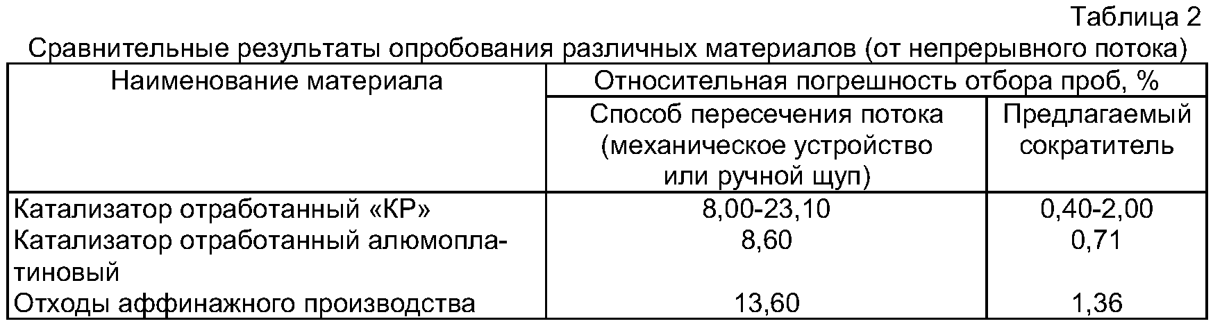 Устройство предназначено для использования при сокращении и отборе проб сыпучих материалов и может применяться в системе контроля качества подготовки сырья в различных отраслях промышленности. Внутри корпуса электромеханического дискового сократителя под загрузочным бункером размещена направляющая усеченная воронка. На уровне ее верхнего среза по большому основанию на вертикальном валу соосно и выше разбрасывающего диска установлен усреднительный диск. Пробоотборное устройство расположено ниже разбрасывающего диска. Оно выполнено в виде двух подвижных стенок, образующих по длине поперечной оси корпуса регулируемую по ширине щель. Корпус и пробоприемник фиксируются между собой стыковочным узлом, состоящим из рамы с роликами. Фиксация элементов узла крепления корпуса и пробоприемника осуществляется винтовыми замками. Применение сократителя и способа сокращения отбора проб с его использованием за счет простоты и надежности конструкции обеспечивает получение стабильных результатов при оценке количественных и качественных показателей состава и свойств сыпучих материалов. 2 н. и 5 з.п. ф-лы, 2 ил., 2 табл.