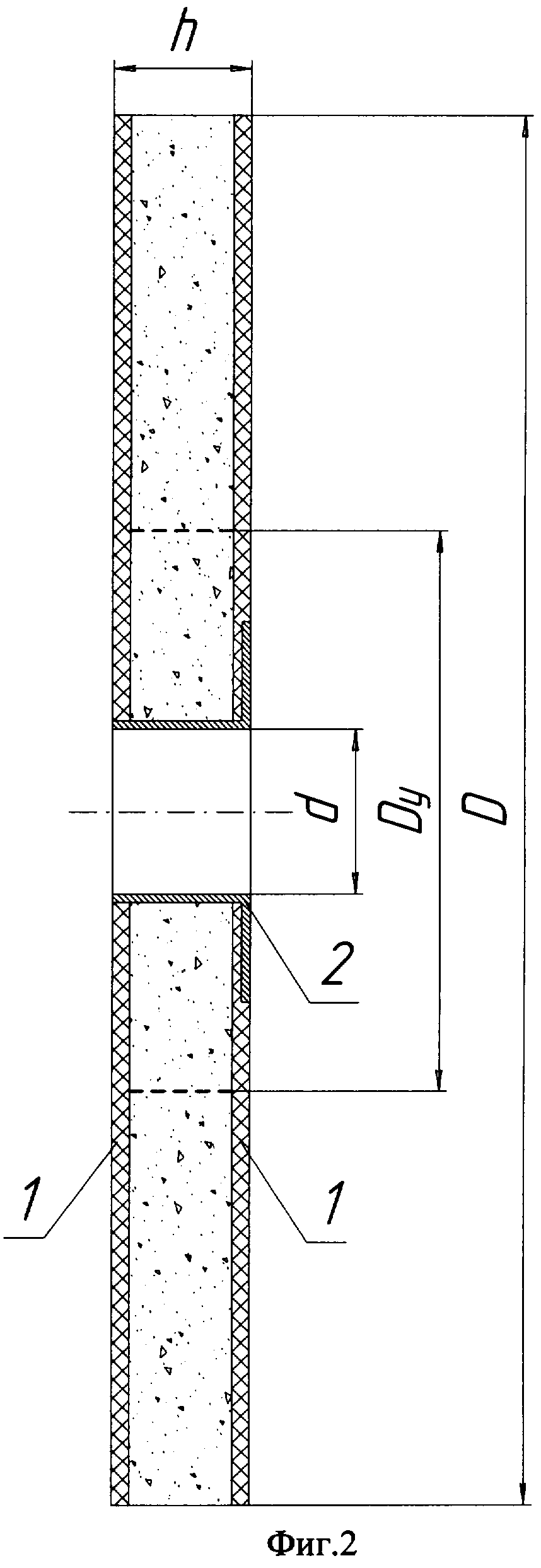 Заявляемое техническое решение относится к области машиностроения, а именно к способам изготовления шлифовальных кругов повышенной прочности, и может быть использовано в инструментальном производстве. Известен способ изготовления шлифовальных кругов на бакелитовой (фенолформальдегидной) связке, который включает приготовление абразивной смеси, т.е. смешивание шлифовальных зерен с увлажнителями, связующими и наполнителями, укладку полученной смеси в пресс-форму, формование (прессование) шлифовального круга, извлечение его из пресс-формы, а также последующую термическую обработку (Тырков В.Н. Абразивные материалы и инструменты. Каталог. - М.: ВНИИТЭМР, 1986, с.156-157). Недостатком известного способа является то, что получаемый шлифовальный круг имеет одинаковую прочность во всем объеме своей конструкции. В то же время, известно, что процесс разрушения шлифовального круга при его вращении начинается от посадочного отверстия. Действие центробежной силы приводит к возникновению в теле шлифовального круга тангенциальных растягивающих напряжений, которые имеют максимальные значения у посадочного отверстия круга и являются основной причиной его разрушения (Любомудров В.Н., Васильев Н.Н., Фальковский Б.И. Абразивные инструменты и их изготовление. - М.-Л.: Машгиз, 1953, с.60-67; Филимонов Л.Н. Высокоскоростное шлифование. - Л.: Машиностроение, 1979, с.93-109; Нетребко В.П., Коротков А.Н. Прочность шлифовальных кругов. - М.: Николь, 1992, с.31-39). Вследствие этого для повышения прочности круга целесообразным является упрочнение зоны у его посадочного отверстия (например, путем изготовления зоны у посадочного отверстия из зерен мелких зернистостей) и армирование круга упрочняющими элементами (например, стеклосетками и металлическими втулками), что не предусмотрено в известном способе. В случае изготовления согласно известному способу, шлифовального круга повышенной прочности целиком из зерен мелких зернистостей производительность шлифования таким кругом, как известно, снижается (Тырков В.Н. Абразивные материалы и инструменты. Каталог.- М.: ВНИИТЭМР, 1986, с.296-298; Филимонов Л.Н. Высокоскоростное шлифование. - Л.: Машиностроение, 1979, с.235). Также в известном способе не учитывается, что форма шлифовальных зерен, из которых изготавливают шлифовальный круг, влияет на его прочность (Коротков А.Н., Дубов Г.М. Повышение работоспособности отрезных шлифовальных кругов. - Кемерово.: Типография ГУ КузГТУ, 2005, с.116-117; Петрушин С.И., Коротков В.А. Повышение эксплуатационных возможностей отрезных шлифовальных кругов - Обработка металлов, №4 (29) 2005, с.16-18). Известен также способ изготовления отрезных шлифовальных кругов, где шлифовальные зерна смешивают со связкой, укладывают полученную массу в пресс-форму, формуют и термообрабатывают шлифовальный круг, при этом используют шлифовальные зерна одинаковой игольчатой формы и ориентируют их в теле круга в радиальном направлении воздействием электростатического поля (патент РФ №2267395, авторы Коротков А.Н., Дубов Г.М.). Недостатком известного способа является то, что получаемый шлифовальный круг имеет одинаковую прочность во всем объеме своей конструкции. В то же время известно, что процесс разрушения шлифовального круга при его вращении начинается от посадочного отверстия. Действие центробежной силы приводит к возникновению в те