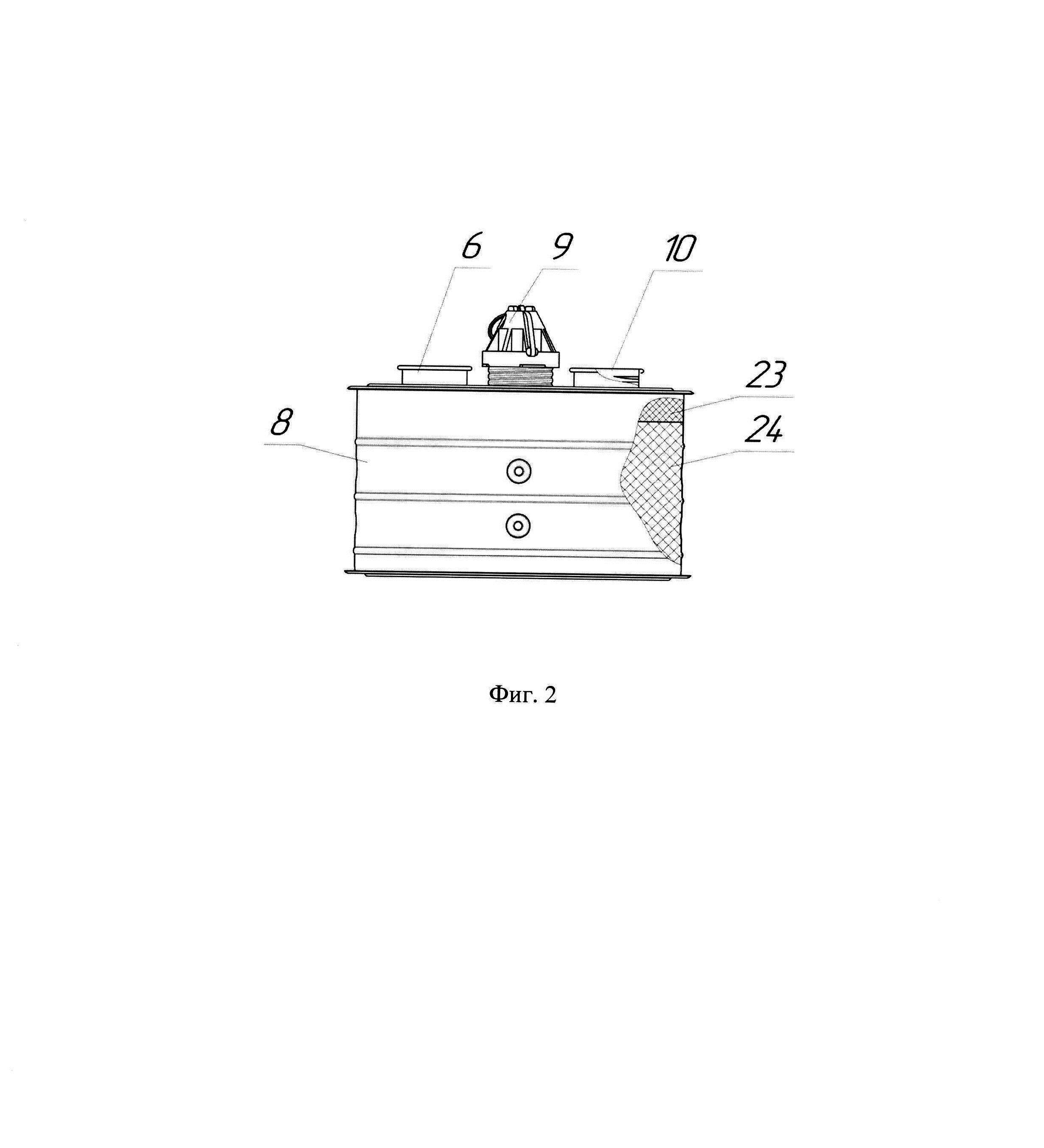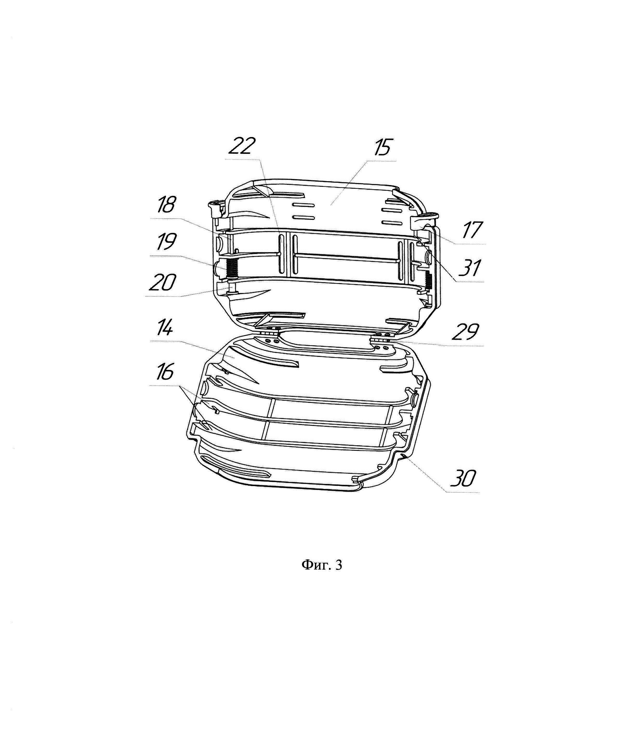 Полезная модель относится к средствам индивидуальной защиты органов дыхания, используемых в нефтеперерабатывающей, химической и других отраслях промышленности, в частности к изолирующим дыхательным аппаратам с химически связанном кислородом, предназначенным для защиты органов дыхания в аварийной ситуации и в непригодной для дыхания атмосфере. Изолирующие самоспасатели предназначены для экстренной кратковременной защиты органов дыхания в аварийных ситуациях, связанных с образованием непригодной для дыхания среды, характеризующейся недостатком кислорода или чрезвычайной загазованностью, а также при неизвестном составе и концентрациях загрязняющих воздух примесей. Как правило, самоспасатель включает лицевую часть (маску или капюшон с полумаской, или загубник), служащую для изоляции органов дыхания человека от окружающей среды и соединенную с теплообменником, а также гофрированную трубку (дыхательный шланг), соединяющую теплообменник с регенеративным патроном, заполненным регенеративным продуктом, причем регенеративный патрон соединен с дыхательным мешком. В общем виде принцип работы самоспасателя с «маятниковой» циркуляцией газовой дыхательной смеси (далее - ГДС) в замкнутом дыхательном контуре характеризуется тем, что ГДС дважды проходит через регенеративный патрон, при этом существенно повышается температура вдыхаемой ГДС, однако в последней существенно понижается концентрация углекислого газа. Напротив, принцип работы самоспасателя с «круговой» схемой дыхания предполагает однократное прохождение ГДС через регенеративный патрон, следствием чего являются низкая температура вдыхаемой ГДС, но более высокая концентрация в такой смеси углекислого газа по сравнению с «маятниковой» схемой. Источником кислорода для дыхания является размещенный в регенеративном патроне продукт на основе надпероксида калия - KO2 (далее - регенеративный продукт), обеспечивающий поглощение из выдыхаемого человеком воздуха воды и углекислого газа и выделение в ходе химической реакции кислорода, обогащающего дыхательную смесь. Самоспасатели с таким принципом работы, независимо от применяемой схемы циркуляции ГДС, являются изолирующими дыхательными аппаратами с химически связанным кислородом. Эффективность удаления из ГДС углекислого газа и температура вдыхаемой ГДС являются взаимосвязанными параметрами, ограничивающими время защитного действия дыхательного аппарата и определяемыми конструкцией дыхательного аппарата (реализованной схемой циркуляции ГДС). Известен изолирующий дыхательный аппарат с химически связанным кислородом (патент РФ №150432, МПК А62В 19/00, опубликовано: 20.02.2015), который содержит патрон с регенеративным продуктом, неподвижно закрепленный в корпусе футляра, дыхательную трубку с загубником, носовой зажим, дыхательный мешок, верхнюю и нижнюю крышки футляра, стяжную ленту. На верхней крышке патрона находится пусковое устройство и шарнирно закрепленная пробка. На верхний и нижний фланцы патрона надеты уплотнительные прокладки. При сборке дыхательного аппарата загубник надевается на пробку, образуя герметичное соединение. Верхняя крышка футляра, патрон с корпусом футляра и уплотнительными прокладками и нижняя крышка футляра герметично соединяются между собой при помощи стяжной ленты. Регенер