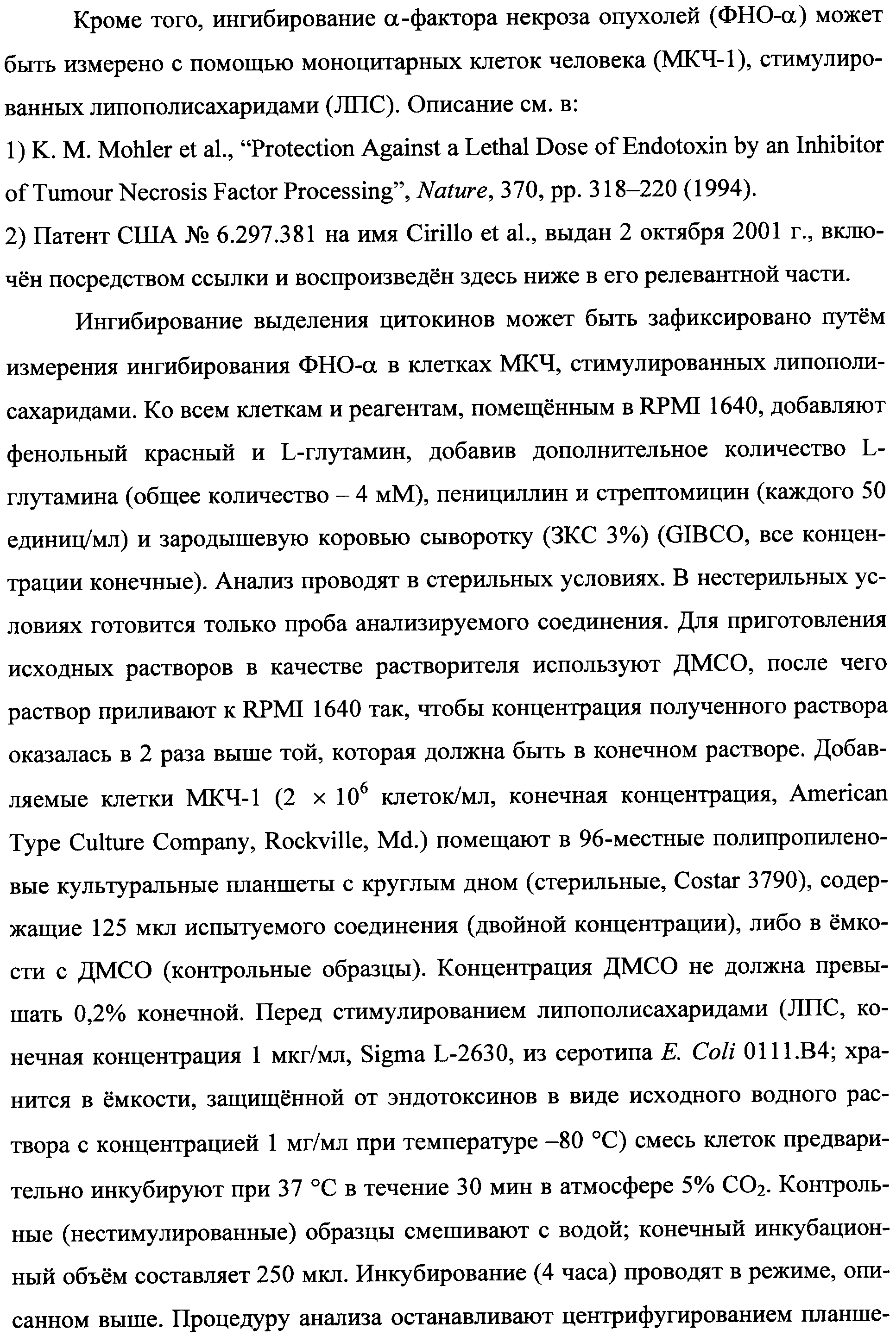 23. Способ ингибирования выделения фактора некроза опухоли ФНО-α введением фармацевтической композиции по п.22.