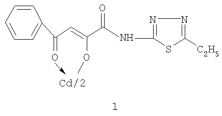 Бис{3-фенил-1-[2-(5-этил-1,3,4-тиадиазолил)]карбоксамидо-1,3-пропандионато} кадмий формулы: