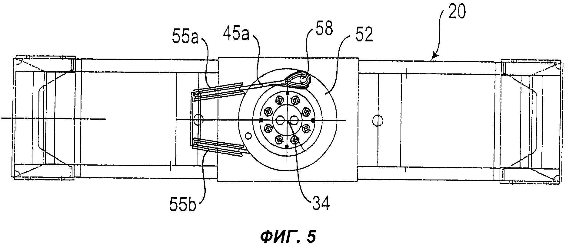 1. Устройство для разработки грунта, в особенности грейфер для возведения стен в грунте, содержащее опорный корпус (32), выполненный с возможностью соединения с базовой машиной (12), рабочий орган (20), на котором расположены рабочие инструменты (22) для разработки грунта и который установлен с возможностью поворота на опорном корпусе (32) посредством опорного устройства (30), и поворотное устройство (40) для поворота рабочего органа (20) относительно опорного корпуса (32) вокруг оси (34) поворота, отличающееся тем, что поворотное устройство (40) содержит, по меньшей мере, один линейный привод (44) и тросовый или цепной передаточный механизм (50), посредством которого создаваемое линейным приводом (44) линейное движение может преобразовываться в поворотное движение. 2. Устройство для разработки грунта по п.1, отличающееся тем, что линейный привод (44) содержит исполнительный цилиндр, в особенности гидроцилиндр, с поршневым штоком (47) которого соединен гибкий элемент (45) передаточного механизма (50). 3. Устройство для разработки грунта по п.2, отличающееся тем, что исполнительный цилиндр является исполнительным цилиндром двухстороннего действия, из корпуса (46) цилиндра которого в обе стороны выступают поршневые штоки (47), а гибкий элемент (45) передаточного механизма (50) соединен двумя своими концами с поршневыми штоками (47). 4. Устройство для разработки грунта по любому из пп.1-3, отличающееся тем, что тросовый или цепной передаточный механизм (50) содержит установочный круг (52), к которому шарнирно прикреплен, по меньшей мере, один гибкий элемент (45), охватывающий его, по меньшей мере, частично. 5. Устройство для разработки грунта по п.4, отличающееся тем, что установочный круг (52) расположен в области опорного устройства (30) и коаксиально оси (34) поворота. 6. Устройство для разработки грунта по п.4, отличающееся тем, что линейный привод (44) расположен на рабочем органе (20), а установочный круг (52) жестко укреплен на опорном корпусе (32). 7. Устройство для разработки грунта по п.4, отличающееся тем, что к установочному кругу (52) шарнирно прикреплены два гибких элемента (45), посредством которых может осуществляться поворотное движение в одном из противоположных направлений. 8. Устройство для разработки грунта по любому из пп.1-3, 5-7, отличающееся тем, что гибкий элемент (45) является стальным тросом. 9. Устройство для разработки грунта по любому из пп.1-3, 5-7, отличающееся тем, что на опорном устройстве (30) предусмотрены подсоединения (36) для гидравлических сред. 10. Устройство для разработки грунта по любому из пп.1-3, 5-7, отличающееся тем, что базовая машина (12) оснащена мачтой (14), на которой установлено подъемное устройство (18), на нижнем конце которого расположен рабочий орган (20). 26.01.2007 по пп.1-10.
