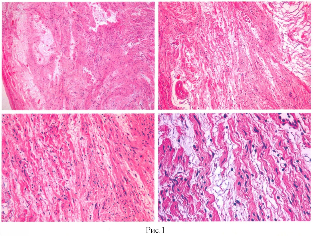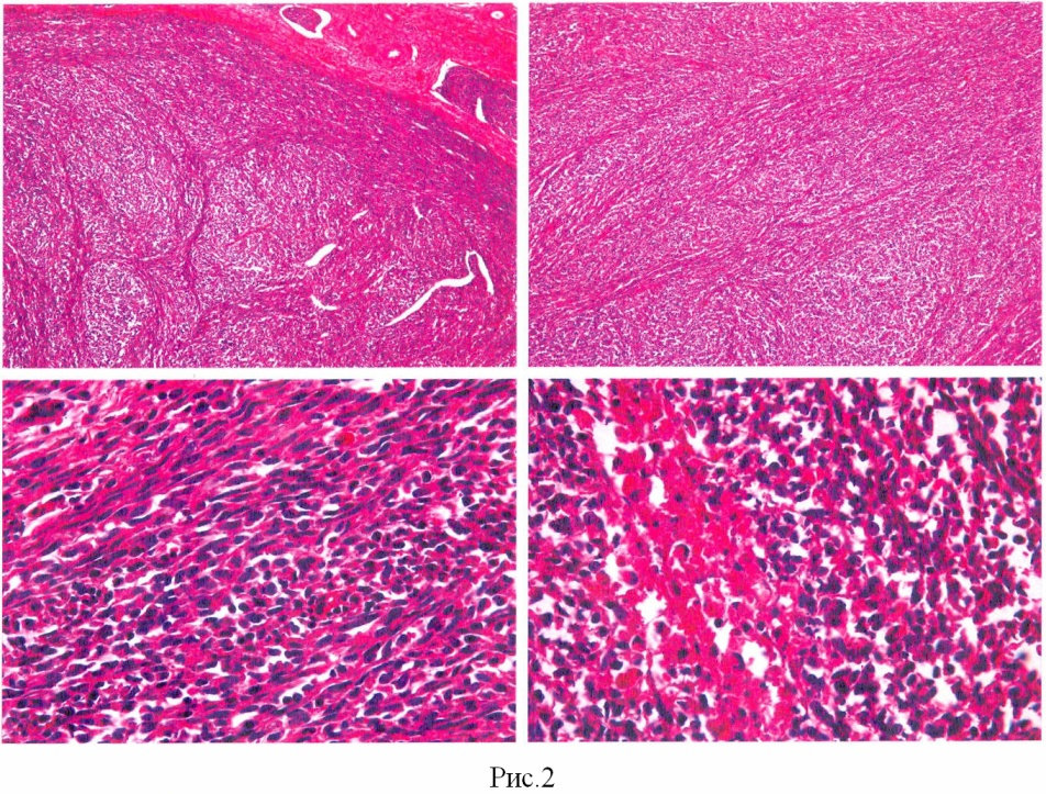 Изобретение относится к медицине, а именно к онкологии, патоморфологии. Как хорошо известно практикующим патологоанатомам, диагностика опухолей мягких тканей чрезвычайно сложна. Это связано как с существованием большого количества нозологических форм, так с морфологическим сходством опухолей различных гистогенетических групп. Для установления корректного диагноза врач должен обладать способностью выделения главных, определяющих и диагностически значимых признаков из множества второстепенных, характеризующих новообразование. Данная способность, помимо таланта, напрямую зависит от профессионального стажа и, в связи с этим, диагностика опухолей мягких тканей нередко представляет для молодого патологоанатома трудновыполнимую задачу. Среди опухолей мягких тканей особое место занимают опухоли из оболочек периферических нервов (ОПН). Эти новообразования достаточно часто встречаются в повседневной практике и имеют особенности, отличающие их от других групп опухолей мягких тканей. Считается, что ОПН имеют нейроэктодермальное происхождение в отличие от большинства мягкотканых образований, развивающихся из мезодермы. Для экземпляров ОПН, локализующихся в нерве, характерна истинная капсула, представленная фрагментами эпи- и периневрием, в то время как большинство других опухолей мягких тканей таковой не имеют либо ограничены фиброзной псевдокапсулой. И, наконец, среди доброкачественных ОПН подтвержден феномен злокачественной трансформации (в частности, в нейрофибромах). Также важное клиническое значение имеет ассоциация злокачественных и доброкачественных ОПН с нейрофиброматозами и шванноматозом. Выделяют доброкачественные и злокачественные ОПН. Среди доброкачественных выделены три основные категории в зависимости от доминирующих и составляющих клеточных элементов: шванномы, нейрофибромы и периневриомы. В последние годы описаны так называемые опухоли-гибриды, имеющие бифазную гистологическую структуру, т.е. сочетающие участки нейрофибромы и шванномы, шванномы и периневриомы или нейрофибромы и периневриомы, подтверждаемые микроскопически, иммуногистохимически и ультраструктурно. Данная категория опухолей расширяет спектр новообразований из оболочек периферических нервов. Клиническая, морфологическая, иммуногистохимическая характеристика каждой из вышеперечисленных нозологических форм подробнейшим образом представлена в соответствующих руководствах и статьях (Enzinger&Weiss′s Soft Tissue Tumor. Fifth Edition. Ed. S.W.Weiss and J.R.Goldblum. - 2008; Feany M.B., Anthony D.C., Fletcher C.D.M, Nerve sheath tumors with hybrid features of neurofibroma and schwannoma: a conceptual challenge. - Histopathol. - 1998. - Vol.32. - P.405-410; Michal M. et al. A benign neoplasm with histopathological features of both schwannoma and retiform perineurioma (benign schwannoma-perineurioma): a report of six cases of a distinctive soft tissue tumors with predilection for the fingers. - Virch. Arch. - 2004. - Vol.445. - P.347-353; Bundock E.A., Fletcher CD. Nerve sheath tumors with hybrid features of perineurioma and schwannoma. - Mod Pathol. - 2004. - Vol.17. - P.12A; Kazakov D.V. et al. Hybrid peripheral nerve sheath tumors: schwannoma-perineurioma and neurofibroma-perineurioma. A report of three cases in extradigital locations. - Ann Diagn Pathol. - 2005. - Vol.9. - P.16-23; Shelekhova K.V. et al. Hybrid neurofibroma-permeurioma: an additional example of an extradigital tumor. - Ann Diagn Pathol. - 2008. - Vol.12. - P.233-234), выбранных в качестве прототипа. Однако провести дифференциальный диагноз как между опухолями периферических нервов, так и с новообразованиями других гистогенетических групп бывает очень сложно из-за перекрывающихся морфологических признаков. Учитыва