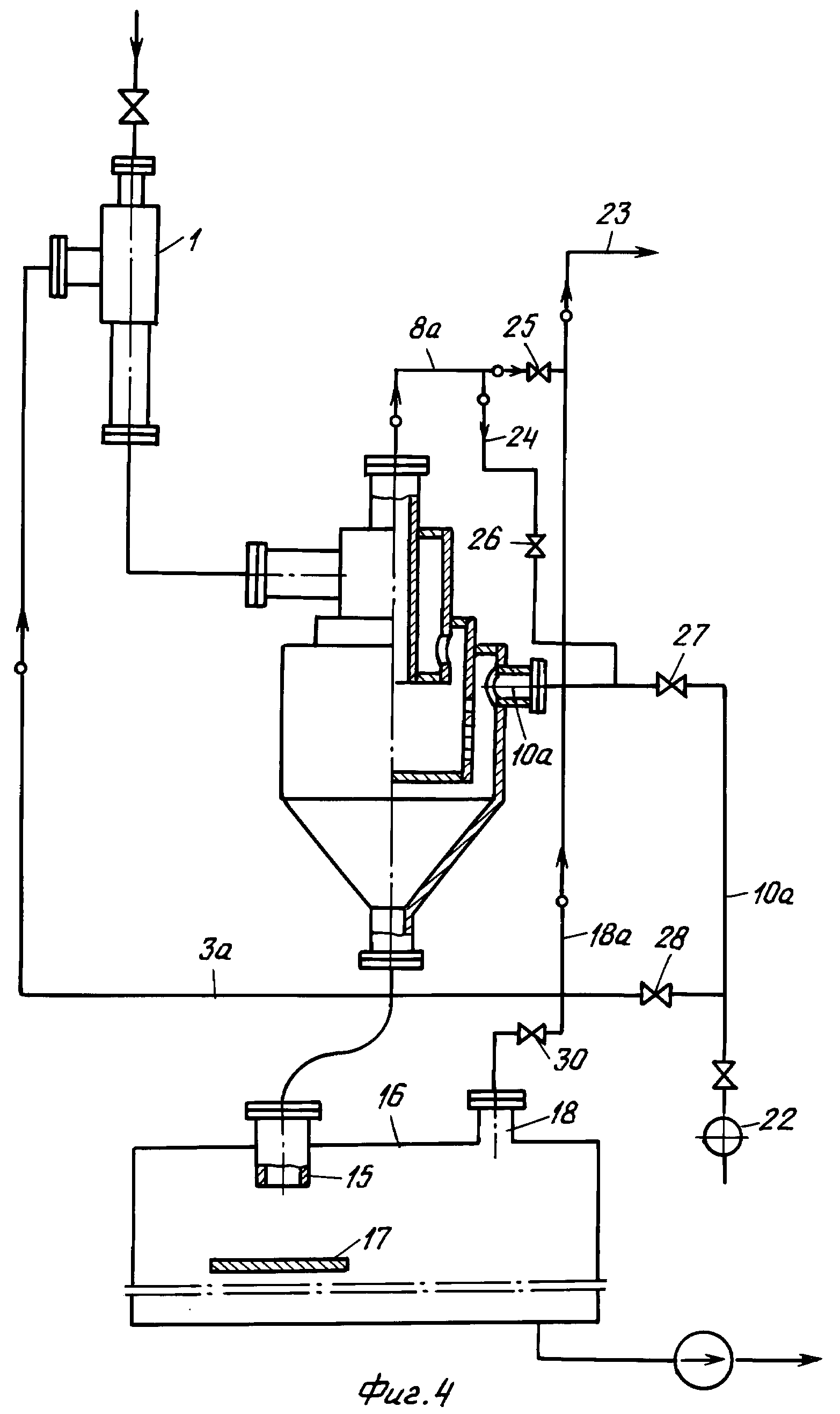 Изобретение относится к области теплоэнергетики и может быть использовано в системах химводоподготовки на тепловых электростанциях и котельных в качестве декарбонизатора, а также в других отраслях промышленности, например в химической и нефтяной промышленности, для дегазации жидкостей от растворенных в ней газов, например для очистки нефти от сероводорода при помощи попутного или природного газа. Известны и нашли широкое применение десорберы, включая и декарбонизаторы, представляющие собой колонну, заполненную кольцами Рашига или другими насадками, в которой в противотоке контактируют жидкость и десорбирующий газообразный агент. Жидкость подается сверху, а воздух - снизу. Таковы декарбонизаторы для десорбции углекислоты из воды (Л.1. Справочник химика-энергетика под редакцией Голубцова В.А. и др. Государственное энергетическое издательство, Москва, Ленинград, 1958, том второй, стр.156. 157, фиг.9-11, 9-12, декарбонизаторы), а также вертикальный газоотделитель с регулярной насадкой АВР (см.Л.2. М.Н.Персиянцев. «Совершенствование процессов сепарации нефти от газа в промысловых условиях», Москва: Недра, 1999 г., стр.194, рис.5.4, стр.199, рис.5.6, стр.212, рис.5.11. Принципиальная схема установки сепарации нефти с концевой ступенью в виде колонны глубокой дегазации (КГД) показана на стр.221, рис.6.1, и стр.226, рис.6.4). Недостатком указанных аппаратов является их громоздкость, большая метало- и материалоемкость, дороговизна и недостаточная эффективность работы. Со временем керамические кольца Рашига крошатся, покрываются скользким налетом, что приводит к неудовлетворительной работе декарбонизатора и к необходимости выгружать 20 и более тонн колец из каждого декарбонизатора, очищать их от налета и заменять разрушенные кольца или полностью менять кольца. Во много раз менее громоздки и имеют значительно меньшую металло- и материалоемкость аппараты интенсивного массообмена центробежно-вихревого типа без заполнителя (колец Рашига). Например, дегазационная установка, защищенная авторским свидетельством СССР № 1402582 (кл. C02F 1/20), могущая работать, например, в качестве десорбера-декарбонизатора. Она представляют собой жидкоструйный эжектор, в котором исходная жидкость (вода) эжектирует газообразный десорбирующий агент (атмосферный воздух). Последовательно по ходу жидкости установлен дегазатор-сепаратор центробежно-вихревого типа, в котором жидкость приобретает вращательное движение, а воздух, проконтактировавший с жидкостью, должен сепарироваться от капель жидкости и выходить в атмосферу. Эта установка малогабаритна, имеет малую металлоемкость, не имеет дутьевого вентилятора. Однако эта установка оказалась недостаточно эффективна из-за того, что сам дегазатор является эжектором за счет тангенциального отвода жидкости. Отработанный воздух, насыщенный десорбированными газами, частично выходил из дегазатора через патрубок в верхней крышке, а частично эжектировался тангенциальным отводящим патрубком во вторую ступень эжекторов. Но даже при этом снижение содержания углекислоты было от 100 до 6 мг/л при норме 4 мг/л. Эффективность использования каждого кубометра воздуха оказалась значительно большей, однако недостаточной из-за повторного использования отработанного воздуха, насыщенного углекислотой, вместо свежего. В качестве прототипа выбрано име