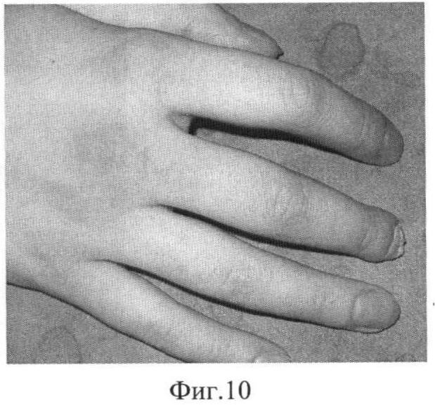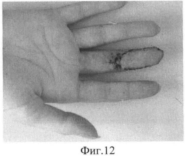 Изобретение относится к области медицины, а именно к травматологии и ортопедии, и может быть использовано для лечения пациентов с когтевидной деформацией ногтевых фаланг пальцев кисти. Для ликвидации когтевидной деформации, возникающей вследствие утраты дистальной части кости ногтевой фаланги, являющейся опорной основой для растущего ногтя при сохранении проксимального отдела ногтевого ложа, предложены различные способы оперативного лечения. Так, одним из способов является перемещение ногтевого комплекса в проксимальном направлении (Белоусов А.Е. // Пластическая, реконструктивная и эстетическая хирургия. - СПб.: Гиппократ, 1998, стр.411-412; Verdan C.E., Egloff D.V. // Fingertip injuries // Surg. Clin. N. Amer. - 1981. - Vol. 61, №2. - P.237-266). Ноготь с небольшим ладонным лоскутом приподнимают и сформированный длинный тыльный лоскут перемещают в проксимальном направлении. На ладонную поверхность пальца пересаживают перекрестный лоскут с соседнего пальца. После заживления раны удаляют избыток мягких тканей на тыле пальца. Недостатками данного метода являются: относительное укорочение длины пальца, донорский дефект на соседнем пальце, нарушение кожной чувствительности в месте пластики перемещенным лоскутом, необходимость повторных оперативных вмешательств для отсечения ножки лоскута и удаления избытка мягких тканей. Данная операция является аналогом предлагаемого нами способа. Известен способ коррекции когтевидной деформации ногтя путем остеопластического удлинения дистальной фаланги пальца. На ладонно-торцевой поверхности культи формируют и приподнимают кожный лоскут, включающий ткани ногтевого ложа и ногтевую пластинку; с помощью тонкой спицы фиксируют к костной культе дистальной фаланги пальца предварительно взятый некровоснабжаемый костный трансплантат, функция которого состоит в обеспечении последующей поддержки растущего ногтя. Затем ладонный дефект тканей закрывают скользящим ладонным пальцевым лоскутом (Белоусов А.Е. Пластическая, реконструктивная и эстетическая хирургия. - СПб.: Гиппократ, 1998, стр.411-412). Этот метод имеет существенные недостатки. В частности, необходимость выделения сосудисто-нервных пучков на протяжении всего пальца приводит к выраженному отеку и лимфостазу в лоскуте в послеоперационном периоде, что часто сопровождается нарушением чувствительности и трофики дистальных отделов пальца. Также ладонный пальцевой скользящий лоскут возможно сместить в область реконструкции только при сгибании пальца в проксимальном межфаланговом суставе. Это неизбежно приводит к сгибательной контрактуре последнего за период послеоперационной иммобилизации. Данный вид оперативного лечения является прототипом предлагаемого нами способа. Техническим результатом изобретения является: отсутствие травматизации дополнительного донорского участка на соседнем пальце для замещения дефекта кожи ногтевой фаланги; предотвращение развития недостаточности трофики и иннервации дистальных отделов пальца; отсутствие сгибательной контрактуры проксимального межфалангового сустава оперируемого пальца; возможность устранения подобных деформаций на любом пальце; хороший косметический результат и удовлетворение высоких требований пациента к качеству жизни. Результат изобретения достигается за счет того, что в качестве костного аутотра