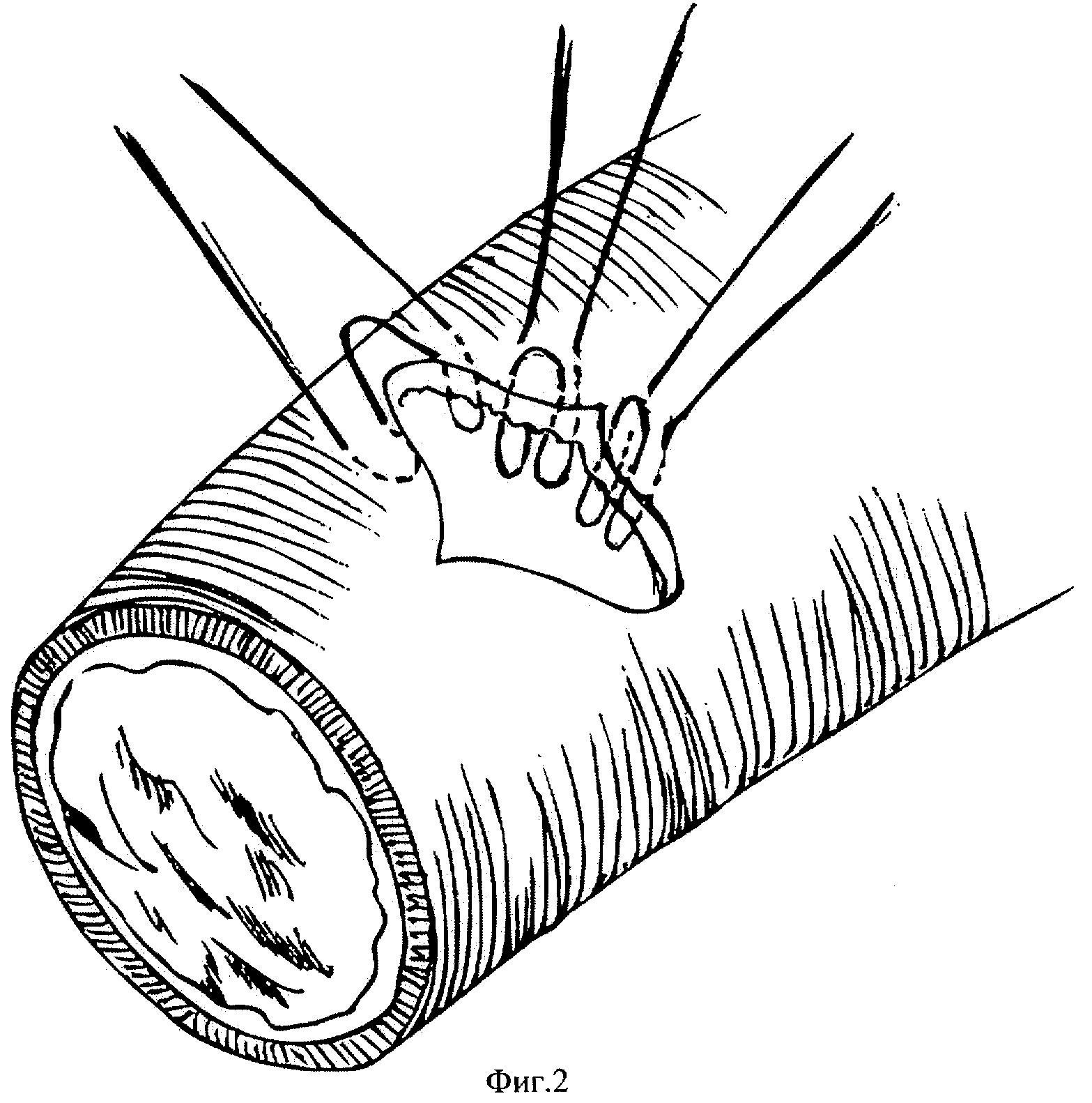 Способ хирургического лечения больных с протяженными стриктурами дистального отдела холедоха, заключающийся в продольном вскрытии общего желчного протока и продольном рассечении передней стенки 12-типерстной кишки, так чтобы разрез холедоха приходился на середину разреза 12-перстной кишки, с формированием анастомоза между холедохом и 12-перстной кишкой, отличающийся тем, что выполняют стандартный мини-доступ, производят мобилизацию 12-перстной кишки по Кохеру, выделяют ретродуоденальную часть холедоха, выполняют холедохотомическое отверстие, производят ревизию холедоха и устанавливают дренаж Холстеда - Пиковского, после чего накладывают холедоходуоденоанастомоз с ретродуоденальной частью холедоха, формируя антирефлюксный инвагинационный клапан путем дуоденотомии в продольном направлении до 3 см в диаметре и ушивании в поперечном направлении до 2 см в диаметре, с наложением одиночными рассасывающимися нитями серозно-мышечного шва, вворачивающего слизистую 12-перстной кишки, после этого формируют холедоходуоденоанастомоз бок в бок с наложением фиксирующих однорядных узловых швов между холедохом и 12-перстной кишкой и наложением второго ряда непрерывных швов атравматичной нитью сначала на заднюю, а затем на переднюю полуокружности формируемого анастомоза, тщательно адаптируя края анастомоза, затем устанавливают гастродуоденальный зонд, при этом создают кишечный жом и под давлением 30-40 см вод. ст вводят раствор, окрашенный метиленовым синим.