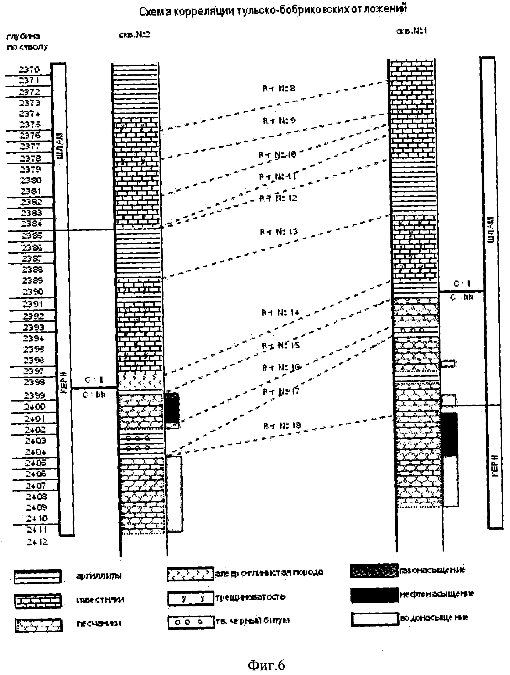 Изобретение относится к исследованию скважин и может быть применено в широком диапазоне при проведении геологических исследований разрезов от параметрических и опорных скважин до поисково-разведочных, наклонно-направленных и горизонтальных. Базовой составляющей является применение фундаментального учения о фациях и формациях в практике проводки бурящихся скважин различных типов путем фациально-литологических исследований выбуренных горных пород, повышения детализации и достоверности геологических разрезов, а так же определения степени продуктивности вскрываемых отложений. Основой детализации является выявление в разрезе фациальных зон и фациальных реперов с первого по четвертый порядок включительно, то есть слоев и прослойков. Заявляемый способ может быть применен непосредственно в процессе бурения ствола скважины в полевых условиях и может быть оперативно выполнен геологической партией на станции. Для реализации способа необходим каменный материал, а также данные ГИС, ГТИ, структурных карт, профилей и разрезов. Спектр применения заявляемого способа достаточно широк. Он может быть использован при проведении работ по детализации геологического разреза, выделении в разрезе наиболее продуктивных участков, определении типов нефти, геологической навигации в продуктивной части пластов горизонтальных скважин и т.д. Известен способ геофизических исследований скважин, основанный на применении физического явления, обеспечивающего дифференциацию разрезов скважин по естественной электрохимической активности. Для повышения достоверности выделения продуктивных горизонтов используют буровой раствор, насыщенный кислородом, за счет чего на поверхности горных пород протекают окислительные электрохимические реакции, активность которых определяется электрохимическими свойствами пород (А.С. СССР №959004). Данный способ является весьма дорогостоящим, не дает полноценной информации о состоянии скважины и не обладает достаточной оперативностью. Определение разреза без проведения литофациального, петрофизического, минералогического исследования крайне сложно. Данный способ не обеспечивает возможности фактического литологического расчленения разреза, а также возможности прогнозирования разреза скважины. Известен способ определения геологических свойств терригенной породы в околоскважинном пространстве по данным геофизических исследований разрезов скважин, включающий выполнение геофизических исследований, во время проведения которых конкретные физические свойства горных пород определяют особенностями устанавливаемых по керну и/или керну и ГИС индивидуальных стохастических, петрофизических связей для отдельных выделяемых в общей толще породы стратиграфических единиц (пластов, залежей углеводородов). Они также отражаются в физических полях различных методов ГИС и определяют регистрируемые при каротаже свойства полей в форме каротажных диаграмм. Таким образом, применяя систему обобщенных петрофизических моделей, в полной мере отражающих базовые петрофизические закономерности, достоверно оценивают свойства конкретных пород в единой системе физико-геологических координат, принятой при построении системы обобщенных петрофизических моделей (патент РФ на изобретение №2219337). Построение пет