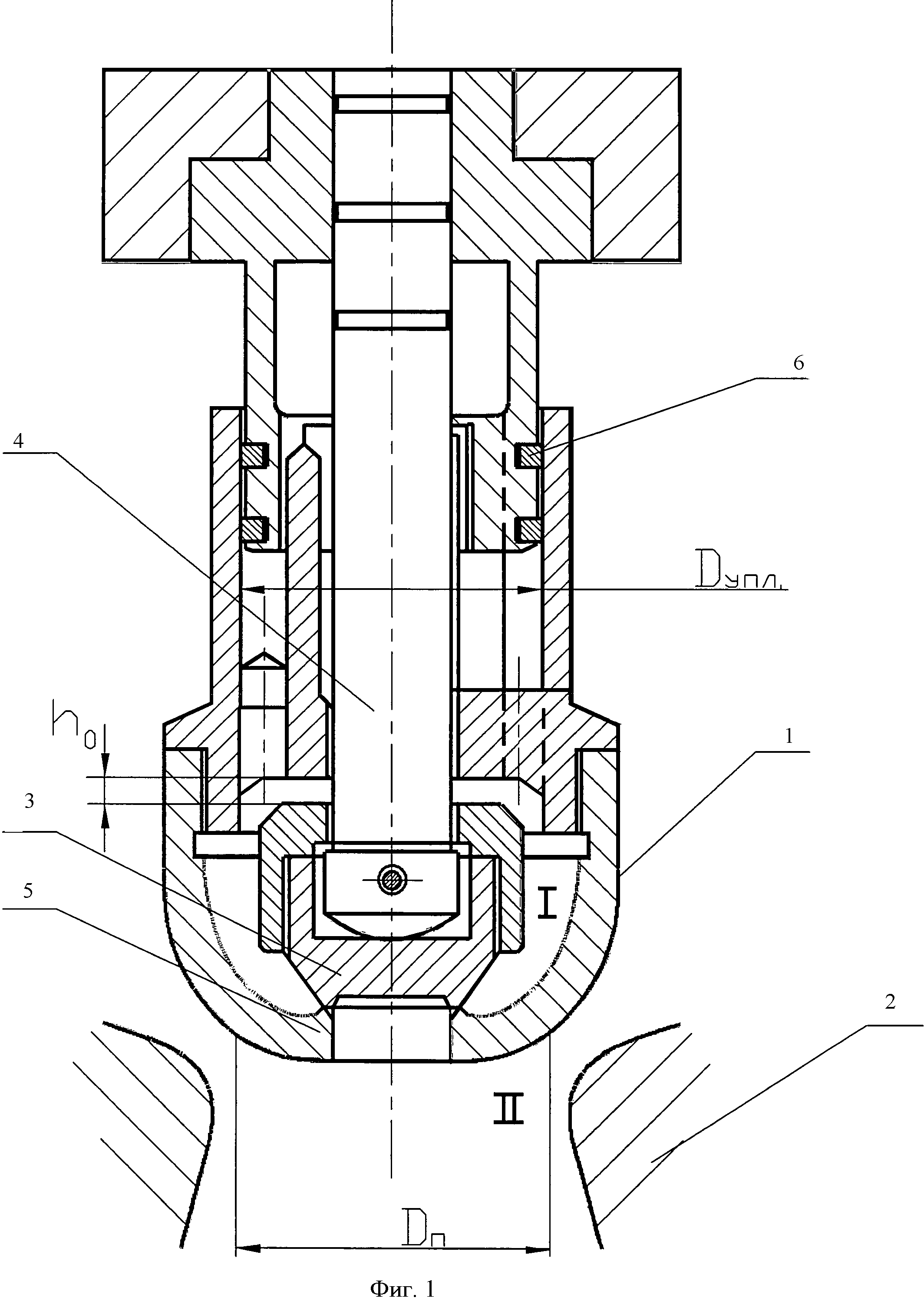 Изобретение относится к области энергетического машиностроения и, в частности, к паровым турбинам. Известен разгруженный регулирующий клапан (фиг.1), состоящий из чаши клапана 1, диффузорного седла 2, разгрузочного клапана 3, штока 4, разгрузочного седла 5, поршневых колец 6 (Зарянкин А.Е., Симонов Б.П. Регулирующие и стопорно-регулирующие клапаны паровых турбин. Москва. Издательство МЭИ, 2005 г). [1]. Клапан работает следующим образом. При подъеме штоком 4 разгрузочного клапана 3 внутренняя полость I клапана сообщается с пространством II за клапаном и давление в указанных полостях выравнивается, т.к. поршневые кольца 6 препятствуют протечке пара из клапанной коробки 1 во внутреннюю полость I основного клапана. В этом случае для дальнейшего подъема клапана необходимо усилие, определяемое по соотношению: где Dп - диаметр посадки клапана 2 на седло 3, Dупл - диаметр расположения уплотнительных поршневых колец 6, а Р0 - давление пара в клапанной коробке. Меняя диаметры Dп и Dупл, можно в широком диапазоне менять величину усилия на штоке 4, необходимую для перемещения клапана. Основной недостаток этого клапана состоит в том, что при полном открытии клапана сила, прижимающая чашу основного клапана к головке разгрузочного клапана, оказывается очень маленькой, а величина пульсаций давления в потоке за клапаном - очень высокой. В результате под действием пульсирующих динамических сил, обусловленных пульсациями давления в потоке, клапан теряет осевую устойчивость и развиваются автоколебания с перемещением чаши клапана 1 в пределах свободного хода разгрузочного клапана 3, что в конечном счете приводит к разрушению штока. Для предотвращения рассматриваемого недостатка в конструкции, приведенной на фиг.2 [1], используется проточная паровая подгрузка. Ее суть состоит в том, что начиная с определенного подъема окна 7 стакана 8 совпадают с отверстиями 9 на цилиндрической части основного клапана 10 и внутрь клапана поступает добавочное количество пара, за счет чего повышается внутреннее давление, растет сила, прижимающая свободно висящий клапан к головке 11 штока 4. Основной недостаток этого решения состоит в смешении за клапаном основного потока с вторичным, проходящим через внутреннюю часть клапана. В результате такого смешения сильно растут пульсации давления в потоке за клапаном, вызывая не только добавочные потери, но и отрицательно сказывающиеся на динамической надежности соплового аппарата регулирующей ступени паровой турбины. Этот недостаток отсутствует в конструкции разгруженного регулирующего клапана, приведенного на фиг.3 [1]. В данном случае система разгрузки клапана отделена от пространства за клапаном профилированным обводом 12, поверхность которого содержит несколько рядов отверстий перфорации 13, равномерно распределяющей поток, проходящий через систему разгрузки, по основному клапанному каналу. Для предотвращения самопроизвольного осевого перемещения чаши клапана в пределах свободного хода разгрузочного клапана при больших открытиях основного клапана конусная втулка 14 перекрывает доступ пара к системе разгрузки (левая часть фиг.3), и таким образом осуществляется беспроточная подгрузка клапана паровым усилием. Рассматриваемый клапан решает и проблему гидравлического сопротивления: на полном открытии перепад давления на нем н